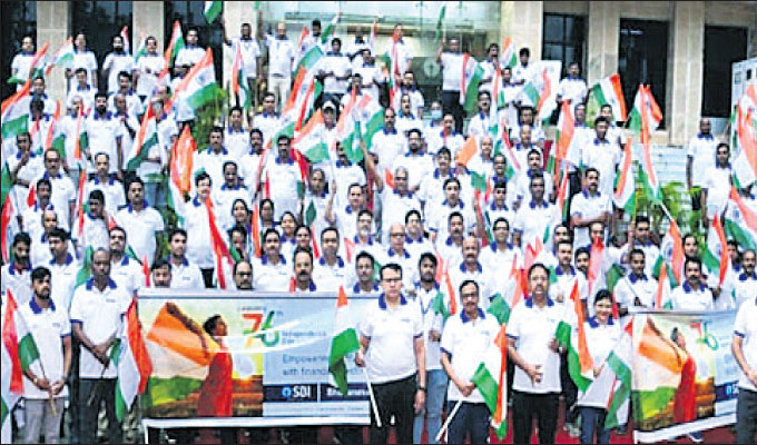 ଭୁବନେଶ୍ୱର,୧୪।୮: ସ୍ବାଧୀନତାର ୭୫ବର୍ଷ ପୂର୍ତ୍ତି ଅବସରରେ ସାରା ଦେଶ ‘ଆଜାଦୀ କା ଅମୃତ ମହୋତ୍ସବ’ ପାଳନ କରୁଛି। ଏହି ମହୋତ୍ସବ ଅନ୍ତର୍ଗତ ହର୍ ଘର୍ ତିରଙ୍ଗା ଅଭିଯାନରେ ଭାରତୀୟ ଷ୍ଟେଟ ବ୍ୟାଙ୍କ (ଏସ୍ବିଆଇ)ର ଭୁବନେଶ୍ବର ମଣ୍ଡଳ ମଧ୍ୟ ସାମିଲ ହୋଇଛି। ଏହି ପରିପ୍ରେକ୍ଷୀରେ ଶନିବାର ବ୍ୟାଙ୍କ ପକ୍ଷରୁ ଜାତୀୟ ପତାକା ବଣ୍ଟନ ସହ ପ୍ରଭାତ ଫେରି କାର୍ଯ୍ୟକ୍ରମର ଆୟୋଜନ କରାଯାଇଥିଲା। ଶର୍ମାଙ୍କ ନେତୃତ୍ୱରେ ସକାଳ ୬ ଟା ୪୫ରେ ବ୍ୟାଙ୍କର ପ୍ରଧାନ କାର୍ଯ୍ୟାଳୟରୁ ଉକ୍ତ ଶୋଭାଯାତ୍ରାର ଶୁଭାରମ୍ଭ ହୋଇଥିଲା। ଅନ୍ୟମାନଙ୍କ ମଧ୍ୟରେ ଏସ୍ବିଆଇର ମହାପ୍ରବନ୍ଧକ ଉତ୍ତମ କୁମାର ହାଜରା ଚୌଧୁରୀ, ମଣ୍ଡଳ ବିକାଶ ଅଧିକାରୀ ମନୋଜ କୁମାର ସିଂ ଏବଂ ଅନ୍ୟ ବରିଷ୍ଠ ମହାପ୍ରବନ୍ଧକମାନଙ୍କ ସହ ୩୦୦ରୁ ଊର୍ଦ୍ଧ୍ୱ ଅଧିକାରୀ ଓ କର୍ମଚାରୀ ଉକ୍ତ ଶୋଭାଯାତ୍ରାରେ ଅଂଶଗ୍ରହଣ କରିଥିଲେ। ସେହିଭଳି ବ୍ୟାଙ୍କ ପକ୍ଷରୁ ୧୨ଦିନିଆ ଗ୍ରାହକ ସମ୍ପର୍କ ଅଭିଯାନ ସହ ଜାତୀୟ ପତାକା ବଣ୍ଟନ କାର୍ଯ୍ୟକ୍ରମ ରହିଛି। ପତାକାଗୁଡିକୁ ରାଜ୍ୟ ସରକାରଙ୍କ ମିଶନ ଶକ୍ତି ଅନ୍ତର୍ଗତ ଏସ୍ଏଚ୍ଜିଙ୍କଠାରୁ କ୍ରୟ କରାଯାଇଛି।