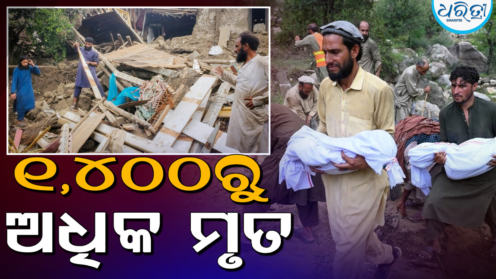 ନୂଆଦିଲ୍ଲୀ,୨।୯: ଆଫଗାନିସ୍ତାନର ପୂର୍ବାଞ୍ଚଳରେ ରବିବାର ରାତିରେ ହୋଇଥିବା ୬.୦ ତୀବ୍ରତାର ଏକ ଶକ୍ତିଶାଳୀ ଭୂମିକମ୍ପରେ ୧,୪୦୦ରୁ ଅଧିକ ଲୋକଙ୍କର ମୃତ୍ୟୁ ହୋଇଛି ଏବଂ ୩,୦୦୦ରୁ ଅଧିକ ଆହତ ହୋଇଛନ୍ତି ବୋଲି ତାଲିବାନ ସରକାର ମଙ୍ଗଳବାର ଘୋଷଣା କରିଛନ୍ତି। ଏହି ଭୂମିକମ୍ପ ଦେଶର ଦଶନ୍ଧି ମଧ୍ୟରେ ସବୁଠାରୁ ମରଣାନ୍ତକ ବିପର୍ଯ୍ୟୟ ମଧ୍ୟରୁ ଗୋଟିଏ ହୋଇଛି।