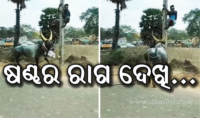 ସୋସିଆଲ ମିଡିଆରେ ପ୍ରତିଦିନ କିଛି ନା କିଛି ଭିଡିଓ ଭାଇରାଲ ହୋଇଥାଏ। ସେଥିରୁ କିଛି ଭିଡିଓ ଦେଖିଲେ ଭୟରେ ଦେହ ଥରି ଉଠେ। ଏବେ kuttykalaivanan ନାମକ ଏକ ଇନ୍ଷ୍ଟାଗ୍ରାମ ଆକାଉଣ୍ଟରେ ଶେୟାର ହୋଇଥିବା ଭିଡିଓରେ ଜଣେ ବ୍ୟକ୍ତି ଷଣ୍ଢଠାରୁ ରକ୍ଷା ପାଇବା ପାଇଁ ଏକ ବିଦ୍ୟୁତ୍ ଖୁଣ୍ଟ ଉପରକୁ ଚଢ଼ିଥିବାର ନଜର ଆସିଛନ୍ତି। ଷଣ୍ଢଟି ଏତେ ରାଗିଯାଇଛି ଯେ, ବ୍ୟକ୍ତିଜଣଙ୍କୁ ଶିକ୍ଷା ଦେବା ପାଇଁ ଖୁଣ୍ଟ ଚାରିପଟେ ଘୂରି ବୁଲୁଥିଲା।