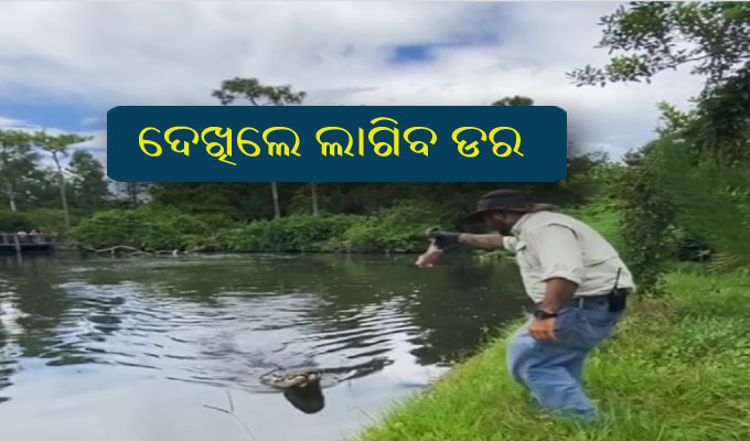 ବର୍ତ୍ତମାନ ସୋସିଆଲ ମିଡିଆରେ କୁମ୍ଭୀରର ଏକ ଭିଡିଓ ଖୁବ୍ ଭାଇରାଲ ହେଉଛି। ଏହି ଏହି ଭିଡିଓ ଦେଖି ଆପଣ ମଧ୍ୟ ଆଶ୍ଚର୍ଯ୍ୟ ହୋଇଯିବେ। ଭିଡିଓରେ କୁମ୍ଭୀରଟି ମଧ୍ୟ ମାଂସ ଖାଇବା ପାଇଁ ନଦୀରୁ ବାହାରି ଆସୁଛି। ଜଣେ ବ୍ୟକ୍ତି କୁମ୍ଭୀରକୁ ଅତ୍ୟନ୍ତ ବିପଜ୍ଜନକ ଉପାୟରେ ଖାଇବାକୁ ଦେଉଛନ୍ତି। କୁମ୍ଭୀରଟି ଡେଇଁବା ଦେଖି ସମସ୍ତେ ଭୟଭୀତ ହୋଇ ଯାଉଛନ୍ତି।