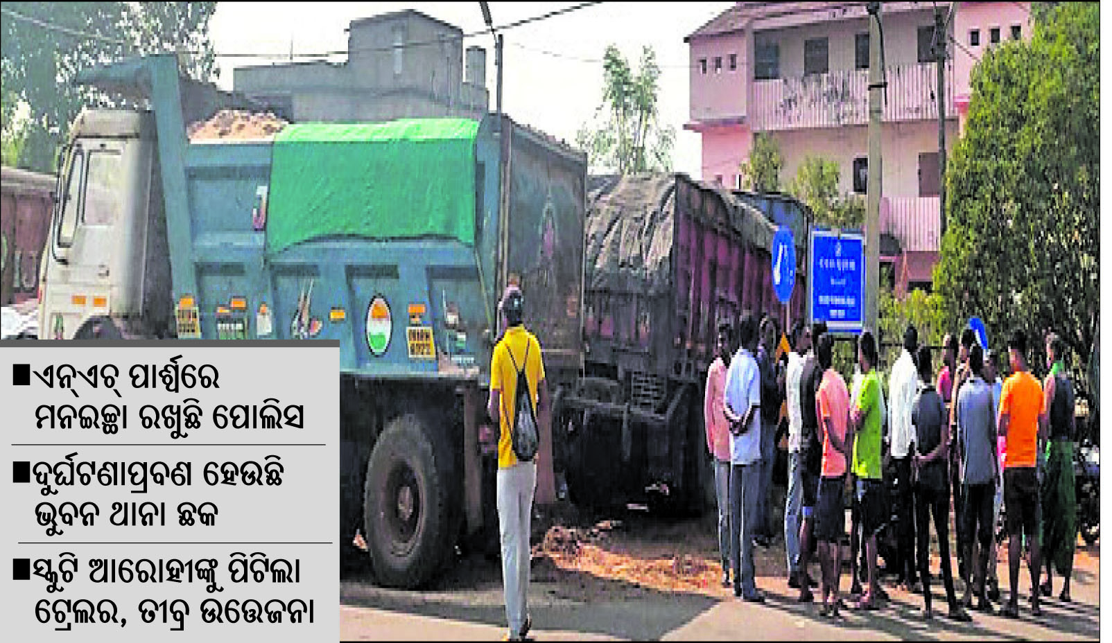 ଭୁବନ, ୨।୧୨(ଡି.ଏନ୍.ଏ.):ଢେଙ୍କାନାଳ ଜିଲା ଭୁବନ ଥାନା ପୋଲିସ ପକ୍ଷରୁ ଜବତ କରାଯାଉଥିବା ଗାଡ଼ିଗୁଡ଼ିକ ୫୩ନଂ. ଜାତୀୟ ରାଜପଥ ପାର୍ଶ୍ୱରେ ଅସୁରକ୍ଷିତ ଭାବେ ରଖାଯାଉଛି। ଫଳରେ ଥାନା ସମ୍ମୁଖ ଭୁଷଳ ଛକ ଏବେ ଦୁର୍ଘଟଣା ଜୋନ୍ରେ ପରିଣତ ହୋଇଛି। ଗୁରୁବାର ସକାଳେ ଥାନା ସମ୍ମୁଖରେ ଏକ ଟ୍ରେଲର ଧକ୍କାରେ ଜଣେ ସ୍କୁଟି (ନଂ. ଓଡି ୦୬ ଜି ୪୫୪୪) ଆରୋହୀ ଗୁରୁତର ହୋଇଛନ୍ତି। ସେ ହେଲେ ଚଣ୍ଡୀପାଳ ଗ୍ରାମର ରବି ବେହେରା (୬୭)। ରବି କୌଣସି କାର୍ଯ୍ୟରେ ଭୁବନ ଯାଉଥିବାବେଳେ ବିପରୀତ ପାର୍ଶ୍ୱରୁ ଆସୁଥିବା ଏକ ଟ୍ରେଲର (ନଂ. ଡବ୍ଲ୍ୟୁବି ୧୧ ଏଫ୍ ୦୮୦୭) ଧକ୍କା ଦେଇଥିଲା। ଏଥିରେ ତାଙ୍କ ଗୋଡ଼ ଭାଙ୍ଗିଯିବା ସହ ଶରୀରର ବିଭିନ୍ନ ସ୍ଥାନରେ ଗୁରୁତର ଆଘାତ ଲାଗିଛି। ଅଗ୍ନିଶମ କର୍ମଚାରୀଙ୍କ ସହାୟତାରେ ସ୍ଥାନୀୟ ବାସିନ୍ଦା ତାଙ୍କୁ ପ୍ରଥମେ ଭୁବନ ମେଡିକାଲରେ ଭର୍ତ୍ତି କରିଥିଲେ। ଅବସ୍ଥା ଉଦ୍ବେଗଜନକ ଥିବାରୁ ପରେ ତାଙ୍କୁ ଜିଲା ମୁଖ୍ୟ ଚିକିତ୍ସାଳୟକୁ ସ୍ଥାନାନ୍ତର କରାଯାଇଛି। ଦୁର୍ଘଟଣା ପରେ ଘଟଣାସ୍ଥଳରେ ଚାପା ଉତ୍ତେଜନା ସୃଷ୍ଟି ହୋଇଥିଲା। ପୋଲିସର ଖାମଖିଆଲ ମନୋଭାବ ଯୋଗୁ ବାରମ୍ବାର ଏଭଳି ଦୁର୍ଘଟଣା ଘଟୁଛି ବୋଲି ଅଞ୍ଚଳବାସୀ ଅଭିଯୋଗ କରିବା ସହ ଥାନା କର୍ମଚାରୀଙ୍କ ସହ ଯୁକ୍ତିତର୍କ କରିଥିଲେ।