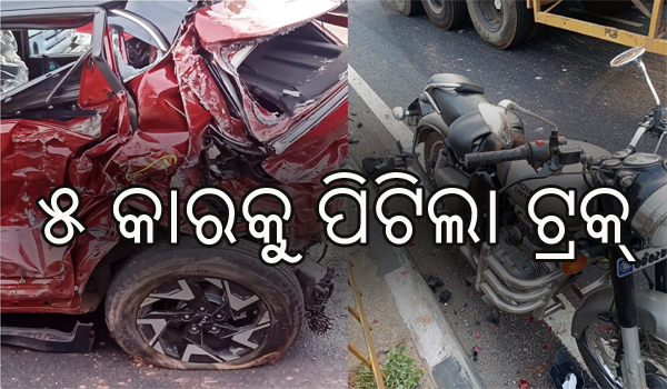 ଭୁବନେଶ୍ୱର,୧୩।୬: ମଞ୍ଚେଶ୍ୱର ଥାନା ଅଧୀନ ପଳାଶୁଣି ଛକରେ ଗୁରୁବାର ଅପରାହ୍ନରେ ଏକ ସିରିଜ୍ ଦୁର୍ଘଟଣା ଘଟିଛି। ଦୁର୍ଘଟଣାରେ ୫ ଆହତ ହୋଇଥିବା ଜଣାପଡିଛି। ଆହତମାନଙ୍କୁ ଉଦ୍ଧାର କରି ହସ୍ପିଟାଲରେ ଭର୍ତ୍ତି କରାଯାଇଛି।