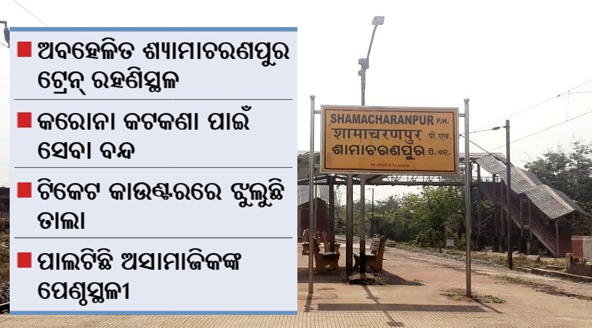 ଢେଙ୍କାନାଳ ଜିଲା ଏବଂ ସହରବାସୀଙ୍କ ଟ୍ରେନ୍ ଯାତ୍ରାକୁ ଅଧିକ ସୁଗମ କରିବା ଲାଗି ୨୭ ବର୍ଷ ତଳେ କାର୍ଯ୍ୟକ୍ଷମ ହୋଇଥିଲା ଶ୍ୟାମାଚରଣପୁର ପାସେଞ୍ଜର ହଲ୍ଟ। ଏହି ଷ୍ଟେଶନରେ ପୁରୀ-ତାଳଚେର, ତାଳଚେର-ପୁରୀ, ଅନୁଗୋଳ-ପୁରୀ, ପୁରୀ-ଅନୁଗୋଳ, ରାଉରକେଲା-ପୁରୀ, ପୁରୀ-ରାଉରକେଲା ଆଦି ପାସେଞ୍ଜର ଟ୍ରେନ୍ ରହଣି କରିଥାଏ। ଭୁବନେଶ୍ୱରରେ କାର୍ଯ୍ୟରତ ୭୦୦ରୁ ଊର୍ଦ୍ଧ୍ୱ ଯାତ୍ରୀ ଦୈନନ୍ଦିନ ସକାଳ ସାଢ଼େ ୭ଟାରେ ଅନୁଗୋଳ-ପୁରୀ ପାସେଞ୍ଜର ଟ୍ରେନ୍ରେ ଯାଇଥାନ୍ତି। ସନ୍ଧ୍ୟା ସାଢ଼େ ୭ଟାରେ ପୁଣି ଉକ୍ତ ଟ୍ରେନ୍ରେ ଫେରିଥାନ୍ତି। ବିଶେଷକରି ରାଜଧାନୀ ଭୁବନେଶ୍ୱରରେ ଚାକିରି କରୁଥିବା ଜିଲାର ଚାକିରିଆଙ୍କ ଲାଗି ଏହି ପାସେଞ୍ଜର ହଲ୍ଟର ଗୁରୁତ୍ୱ ଅନେକ। ଗତବର୍ଷ ମାର୍ଚ୍ଚରେ କରୋନା ସଂକ୍ରମଣକୁ ଦୃଷ୍ଟିରେ ରଖି ଟ୍ରେନ୍ ଚଳାଚଳ ବନ୍ଦ କରାଯାଇଥିଲା। ଅନ୍ଲକ୍ ପରେ ହାତଗଣତି ଦୂରଗାମୀ ଟ୍ରେନ୍ ଚଳାଚଳ କରୁଛି। ଅଦ୍ୟାବଧି ପାସେଞ୍ଜର ଟ୍ରେନ୍ ଚାଲୁ ନ ଥିବାରୁ ବର୍ଷେ ହେଲା ଏହି ଷ୍ଟେଶନ ଯାତ୍ରୀଙ୍କ ସେବାରେ ଆସୁନାହିଁ। ଟିକେଟ୍ କାଉଣ୍ଟରରେ ତାଲା ଝୁଲୁଛି। ବିଶ୍ରାମାଗାର ଅସାମାଜିକଙ୍କ ଆଡ୍ଡାସ୍ଥଳୀ ପାଲଟିଛି। ଅନ୍ୟପଟେ ବାଧ୍ୟ ହୋଇ ଦୈନିକ ଟ୍ରେନ୍ ଉପରେ ନିର୍ଭରଶୀଳ ଯାତ୍ରୀମାନେ ଅଧିକ ଭଡ଼ା ଦେଇ ବସ୍ରେ ଯାଉଛନ୍ତି। ଗାଡ଼ିରେ ଅସମ୍ଭାଳ ଭିଡ଼ ଯୋଗୁ ସିଟ୍ ନ ପାଇ ଠିଆ ହୋଇ ଯାତ୍ରା କରିବାକୁ ପଡୁଛି। ଧୀରେ ଧୀରେ ସବୁ କିଛି ସ୍ବାଭାବିକ ହେଉଥିବାବେଳେ ସରକାରଙ୍କ ପକ୍ଷଣୁ ପାସେଞ୍ଜର ଟ୍ରେନ୍ ଚଳାଚଳକୁ ଅନୁମତି ଦିଆଯାଉନାହିଁ, ଯାହାକୁ ନେଇ ଅସନ୍ତୋଷ ବଢ଼ିବାରେ ଲାଗିଛି।