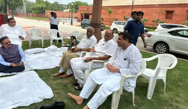 ଆମ ଆଦମୀ ଦଳର ରାଜ୍ୟ ସଭା ଏମ୍ପି ସଞ୍ଜୟ ସିଂଙ୍କୁ ନିଲମ୍ବନ କରିବା ଏବଂ ମଣିପୁର ପ୍ରସଙ୍ଗରେ ପ୍ରଧାନମନ୍ତ୍ରୀଙ୍କ ବିବୃତ୍ତି ଦାବି କରି ବିରୋଧୀ ଦଳର ନେତାମାନେ ଗତ ୨୪ଘଣ୍ଟା ଧରି ବିରୋଧ ପ୍ରଦର୍ଶନ ଜାରି ରଖିଛନ୍ତି। ଏହି ସମୟରେ ଶରଦ ପାୱାର ମଧ୍ୟ ସଞ୍ଜୟ ସିଂଙ୍କ ପାଖରେ ଥିବା ଚେୟାରରେ ବସିଥିବାର ନଜର ଆସିଛନ୍ତି। ପ୍ରଦର୍ଶନରେ ଅଂଶଗ୍ରହଣ କରିବା ପରେ ସେ ଟୁଇଟରରେ ନିଜର ଏକ ଫଟୋ ମଧ୍ୟ ପୋଷ୍ଟ କରଛନ୍ତି। ଯେଉଁଥିରେ ସେ ଲେଖିଛନ୍ତି, ଆଜି ବାକି ବିରୋଧୀ ଦଳର ନେତାଙ୍କ ସହ ଆମ ଆଦମୀ ଦଳର ଏମ୍ପି ସଞ୍ଜୟ ସିଂଙ୍କ ସମର୍ଥନରେ ତଥା ତାଙ୍କ ନିଲମ୍ବନ ବିରୋଧରେ ସେ ଏହି ପ୍ରଦର୍ଶନରେ ଭାଗ ନେଇଛନ୍ତି।