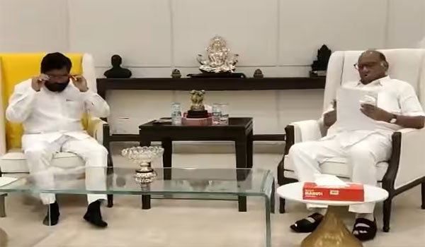 ମୁମ୍ବାଇ,୧।୬: ଏନସିପି ସୁପ୍ରିମୋ ଶରଦ ପାୱାର ଗୁରୁବାର ମହାରାଷ୍ଟ୍ର ମୁଖ୍ୟମନ୍ତ୍ରୀ ଏକନାଥ ଶିନ୍ଦେଙ୍କୁ ଭେଟିବା ପାଇଁ ବର୍ଷା ବଙ୍ଗଳାଠାରେ ପହଞ୍ଚିଛନ୍ତି। ଉଦ୍ଧବ ଠାକ୍ରେ ବିଦେଶରେ ଅଛନ୍ତି। ଏହି ସମୟରେ ଶରଦ ପାୱାର ମୁଖ୍ୟମନ୍ତ୍ରୀଙ୍କୁ ଭେଟିବାକୁ ଆସିଛନ୍ତି। ଏହି ସାକ୍ଷାତର ବିଷୟବସ୍ତୁ ବିଷୟରେ କୌଣସି ସୂଚନା ପ୍ରକାଶ କରାଯାଇନାହିଁ। କିନ୍ତୁ ଏହି ସାକ୍ଷାତ ନିଶ୍ଚିତ ଭାବରେ ସମସ୍ତଙ୍କ ଦୃଷ୍ଟି ଆକର୍ଷଣ କରିଛି।