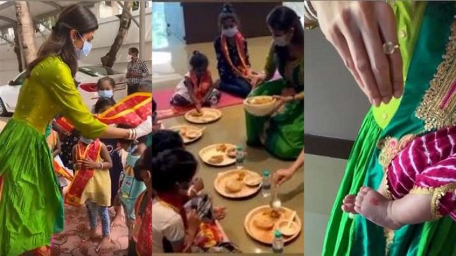ମୁମ୍ବାଇ: ଧରା ପୃଷ୍ଠକୁ ଓହ୍ଲାଇ ଆସିଛନ୍ତି ମହାମାୟା । ଅକ୍ଟୋବର ୨୪ରେ ସାରା ଦେଶରେ ପାଳନ କରାଯାଇଛି ମହାଷ୍ଟମୀ ପୂଜା । ଏହି ଅବସରରେ ମହାଗୌରୀଙ୍କର ସ୍ୱତନ୍ତ୍ର ପୂଜା କରାଯାଇଥାଏ । ଅନେକ ସ୍ଥାନରେ ଏହିଦିନ କନ୍ୟା ସନ୍ତାନଙ୍କୁ ମଧ୍ୟ ପୂଜା କରାଯାଇଥାଏ । ତେବେ ଏହି ଅବସରରେ ବଲିଉଡ୍ ନାୟିକା ଶିଳ୍ପା ସେଟ୍ଟୀ ମଧ୍ୟ ନିଜ କନ୍ୟା ଶମିଶା ସମେତ ୯ ଜଣ କନ୍ୟାଙ୍କର ପୂଜା କରିଛନ୍ତି । ଆଉ ଏହାର ଏକ ଭିଡିଓ ସେ ସୋସିଆଲ ମିଡିଆରେ ଶେୟାର କରିଛନ୍ତି । ଏହି ଭିଡିଓରେ ପ୍ରଥମେ ମା’ଙ୍କ ଆରାଧନା କରାଯାଇଛି ଓ ପରେ ପରେ ଶିଳ୍ପା ତାଙ୍କ କୁନି ଝିଅର ପାଦକୁ ପୂଜା କରୁଛନ୍ତି । ଏହାପରେ ପରେ ୮ ଜଣ କନ୍ୟା ସନ୍ତାନଙ୍କ ପାଦ ଧୋଇ ନୂତନ ବସ୍ତ୍ର ପିନ୍ଧାଇ ଦେଉଛନ୍ତି ଶିଳ୍ପା । ଏହାପରେ ପିଲାମାନଙ୍କୁ ବସାଇ ବନ୍ଦାପନା କରିବା ସହ ଖାଦ୍ୟ ପରସୁଛନ୍ତି ଶିଳ୍ପା । ତାଙ୍କସହ ଭଉଣୀ ଶିଳ୍ପା ଓ ପତି ରାଜ କୁନ୍ଦ୍ରା ମଧ୍ୟ ନଜର ଆସିଛନ୍ତି ଉକ୍ତ ଭିଡିଓରେ । ଏହି ଭିଡିଓ ଶେୟାର କରି ଶିଳ୍ପା ଲେଖିଛନ୍ତି, ଅଷ୍ଟମୀ ତିଥିରେ ହିଁ ସୌଭାଗ୍ୟ ଓ ଆଶୀର୍ବାଦ ଯୋଗୁ ଆମକୁ ଶମିଶା ମିଳିଥିଲା । ଆସି ତା’ର ପ୍ରଥମ ନବରାତ୍ରୀ । ତେଣ ଏହି ଅବସରରେ ଆମେ କନ୍ୟା ପୁଜା କରିଛୁ ।