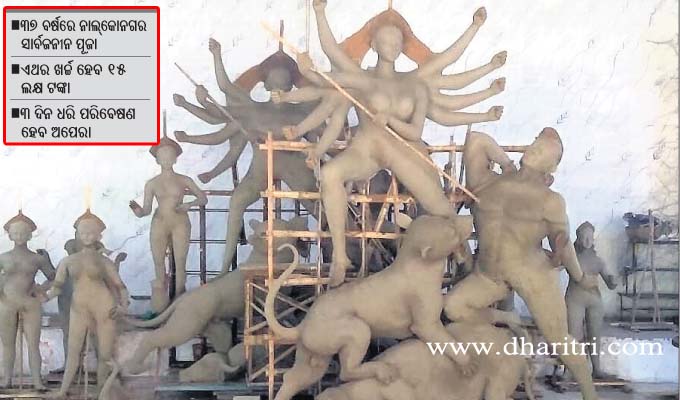 ବଅଁରପାଳ, ୩୦ା୯ (ଡି.ଏନ.ଏ.): ଶେଷ ସୋପାନରେ ପହଞ୍ଚିଲାଣି ଶାରଦୀୟ ପୂଜା ଆୟୋଜନ। ମଣ୍ଡପ ସାଜସଜ୍ଜା ସମ୍ପୂର୍ଣ୍ଣ ହେବାକୁ ଆଉ ଅଧିକ କାର୍ଯ୍ୟ ନାହିଁ। ଝଲମଲ କଲାଣି ରଙ୍ଗବେରଙ୍ଗର ଆଲୋକମାଳା। ଜାଗା ମାଡ଼ି ପସରା ମେଲାଇଲେଣି ମିନାବଜାର, ଖାଦ୍ୟ ଷ୍ଟଲ। ଗହଳିଚଳହଳି ମଧ୍ୟ ଆରମ୍ଭ ହେଲାଣି ଅନୁଗୋଳ ଜିଲା ନାଲ୍କୋନଗରରେ। ସାର୍ବଜନୀନ ଦୁର୍ଗାପୂଜା କମିଟି ପକ୍ଷରୁ ଧୁମ୍ଧାମରେ ପ୍ରସ୍ତୁତି ଚାଲିଥିବା ବେଳେ ଏଥର ପୂଜାରେ ଚମକ ଭରିବ ମୂର୍ତ୍ତି ଓ ମେଢ଼ରେ ହେଉଥିବା ଚୁମୁକି କାରୁକାର୍ଯ୍ୟ।