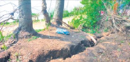 ଏହି ଗ୍ରାମରେ ପ୍ରାୟ ୧୦୦ ପରିବାରର ୬ ଶହରୁ ଅଧିକ ଲୋକ ବସବାସ କରୁଛନ୍ତି। ପ୍ରାୟ ୧୦ ବର୍ଷ ହେବ ଗାଁ ମୁହାଁ ହୋଇଛି ଏହି ନଦୀ। ବାରମ୍ବାର ନଦୀପାର୍ଶ୍ୱରୁ ଅତଡ଼ା ଧସୁଛି ଓ କୂଳ ଲଙ୍ଘୁଛି। ୪ ମାସ ତଳେ ନଦୀର ପଶ୍ଚିମ ଅର୍ଥାତ୍ ଗାଁ ପାର୍ଶ୍ୱରେ ବିରାଟ ଫାଟ ସୃଷ୍ଟି ହୋଇଛି। ଏହି ଫାଟ ଏବେ ବଢ଼ିବାରେ ଲାଗିଛି। ଏପରିକି ଗାଁରେ ଥିବା ଘର ଓ ଗୋରୁ ଗୁହାଳେ ମଧ୍ୟ ଏହି ଫାଟ ସୃଷ୍ଟି ହୋଇଥିବା ଦେଖିବାକୁ ମିଳିଛି। ଫାଟ ସୃଷ୍ଟି ହେବାରୁ ନିକଟବର୍ତ୍ତୀ ସ୍ଥାନରେ ବସବାସ କରୁଥିବା ୬ ପରିବାର ଏବେ ଭୟଭୀତ ଅବସ୍ଥାରେ ରହିଛନ୍ତି। ନଦୀ କୂଳରେ ଥିବା ୨ ଘର, ସଂଖ୍ୟାଧିକ ନଡ଼ିଆ ଓ ତାଳଗଛ ଏବେ ନଦୀ ଆଡ଼କୁ ଢଳିଲାଣି। କେଉଁ ମୁହୂର୍ତ୍ତରେ ବି ଅଘଟଣ ଘଟିବାର ଆଶଙ୍କା ପ୍ରକାଶ କରିଛନ୍ତି ସ୍ଥାନୀୟ ଲୋକେ। ପ୍ରତିବର୍ଷ ବର୍ଷାଋତୁ ପୂର୍ବରୁ ନଦୀପାର୍ଶ୍ୱରେ ବାଲିବସ୍ତା ବନ୍ଧ ପକାଯାଏ। ଯାହାକି ଗଁାକୁ ସାମୟିକ ସୁରକ୍ଷା ଦେଇଥାଏ। ସ୍ଥାୟୀ ପଥରବନ୍ଧ ଓ ଲୁଣାବନ୍ଧ ନିର୍ମାଣ ହେବ ବୋଲି ଶୁଣି ଆସୁଛନ୍ତି। ସ୍ଥାୟୀ ପଥରବନ୍ଧ ନିର୍ମାଣ ଲାଗି ବାରମ୍ବାର ଜଳସେଚନ ବିଭାଗ ଅଧିକାରୀଙ୍କୁ ଅବଗତ କରିଥିଲେ ମଧ୍ୟ କୌଣସି ସୁଫଳ ମିଳିପାରୁନାହିଁ ବୋଲି ଗ୍ରାମବାସୀ କହିଛନ୍ତି। ଏବେ ଗଁାରେ ଯେଉଁ ଫାଟ ସୃଷ୍ଟି ହୋଇଛି ତାହାର ସ୍ଥାୟୀ ମରାମତି କରା ନ ଗଲେ ଅର୍ଦ୍ଧାଧିକ ଘର ନଦୀରେ ବିଲୀନ ହୋଇଯିବାର ଆଶଙ୍କା ରହିଥିବା ଋଷି ପ୍ରସାଦ ମାଝି, ପ୍ରଦୀପ ନାୟକ, ଦେବବ୍ରତ ରାୟ, କାହ୍ନୁ ଚରଣ ପରିଡ଼ା ପ୍ରମୁଖ ଗ୍ରାମବାସୀ ପ୍ରକାଶ କରିଛନ୍ତି। ଏ ସମ୍ପର୍କରେ ବିଭାଗୀୟ କନିଷ୍ଠ ଯନ୍ତ୍ରୀ ପ୍ରଦୀପ କୁମାର ଦାସ କହିଛନ୍ତି, ନଦୀବନ୍ଧରେ ଯେଉଁ ଫାଟ ସୃଷ୍ଟି ହୋଇଛି ତାହାର ଏଷ୍ଟିମେଟ ପ୍ରସ୍ତୁତ କରି ଉପରିସ୍ଥ ଅଧିକାରୀଙ୍କ ନିକଟକୁ ପଠାଯାଇଛି। ଏଥିରେ ଆନୁମାନିକ ୮୦ ଲକ୍ଷ ଟଙ୍କା ବ୍ୟୟବରାଦ ହେବ ବୋଲି ଦର୍ଶାଯାଇଛି। ଖୁବ୍ଶୀଘ୍ର ଏହା ଟେଣ୍ଡର ପ୍ରକିୟାକୁ ଆସିଯାଇ କାମ ଆରମ୍ଭ ହେବା ନେଇ ସେ ଆଶାବ୍ୟକ୍ତ କରିଛନ୍ତି।
