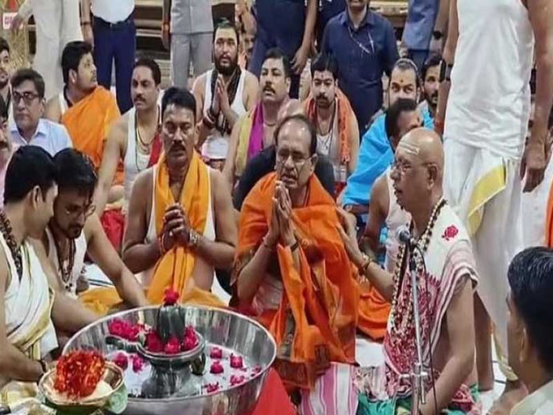 ଉଜ୍ଜୟନୀ,୪।୯ : ମଧ୍ୟପ୍ରଦେଶର ଉଜ୍ଜୟନୀରେ ଅବସ୍ଥିତ ବିଶ୍ୱ ପ୍ରସିଦ୍ଧ ଶ୍ରୀ ମହାକାଳେଶ୍ୱର ମନ୍ଦିରରେ ଶ୍ରୀ ମହାକାଳେଶ୍ୱର ପରିଚାଳନା କମିଟି ସୋମବାର ସକାଳରୁ ଦେଶ ତଥା ରାଜ୍ୟରେ ଭଲ ବର୍ଷା ତଥା ଜନ କଲ୍ୟାଣ ପରିପ୍ରେକ୍ଷୀରେ ଏକ ପୂଚାର୍ଚ୍ଚନା ଆୟୋଜିତ ହୋଇଛି। ଏଥିରେ ମୁଖ୍ୟମନ୍ତ୍ରୀ ଶିବରାଜ ସିଂ ଚୌହାନ ଯୋଗ ଦେଇଥିଲେ। ସୋମବାର ସକାଳେ ଶିବରାଜ ହେଲିକପ୍ଟର ଯୋଗେ ଦେୱାସ ରୋଡରେ ପୋଲିସ ଲାଇନରେ ପହଞ୍ଚିଥିଲେ।