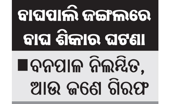 ଚାନ୍ଦିଲି ସଂରକ୍ଷିତ ଜଙ୍ଗଲର ବାଘପାଲି ନିକଟରେ ଗତ ୧୩ ତାରିଖରେ କଲରାପତରିଆ ବାଘର ଗଳିତ ମୃତଦେହ ଉଦ୍ଧାର ହୋଇଥିଲା। ବାର୍ହା ଶିକାର ପାଇଁ ପ୍ରସ୍ତୁତ ବିଦ୍ୟୁତ୍ ଫାଶରେ ପଡି ପ୍ରାପ୍ତ ବୟସ୍କା ମାଈବାଘର ମୃତ୍ୟୁ ହୋଇଥିବା ଜଣାପଡିଥିଲା। ଶବ ଉଦ୍ଧାରର ୪ଦିନ ପୂର୍ବରୁ ବାଘର ପଞ୍ଝା, ନଖ ଓ ଦାନ୍ତକୁ ଦୁର୍ବୃତ୍ତମାନେ କାଟି ନେଇ ଯାଇଥିଲେ। ଅଭିଯୁକ୍ତଙ୍କ ନିକଟରୁ ୪ ପଞ୍ଝା, ୬ଟି ନଖ ଓ ଗୋଟିଏ ଦାନ୍ତ ଉଦ୍ଧାର ହୋଇଥିଲା। ତେବେ ବନବିଭାଗ ଏ ପର୍ଯ୍ୟନ୍ତ ବାଘର ଅନ୍ୟ ଦାନ୍ତ ଓ ୧୦ଟି ନଖ ଉଦ୍ଧାର କରିପାରିନି। ଗ୍ରାମାଞ୍ଚଳରେ ଛୋଟ ପିଲାଙ୍କୁ ବାଘ ନଖ ପିନ୍ଧାଇଲେ ଦେହ ଭଲ ରୁହେ ବୋଲି ବିଶ୍ୱାସ ରହିଛି। ତେଣୁ ବାଘ ମୃତ୍ୟୁ ପରେ ଅଭିଯୁକ୍ତମାନେ ବାଘର ୧୬ଟି ଯାକ ନଖକୁ କାଟି ନେଇଥିଲେ ବୋଲି ପ୍ରାରମ୍ଭିକ ତଦନ୍ତରୁ ଜଣାପଡିଛି। ବାଘ ଶିକାର ପରେ କାର୍ଯ୍ୟରେ ଅବହେଳା ପାଇଁ ଡିଏଫଓ ଉଲୁଣ୍ଡା ବନାଞ୍ଚଳ ଅଧିକାରୀ, ବନପାଳ ଓ ସ୍ଥାନୀୟ ବନରକ୍ଷୀଙ୍କୁ କାରଣ ଦର୍ଶାଅ ନୋଟିସ୍ ଜାରି କରିଥିଲେ। କାର୍ଯ୍ୟାନୁଷ୍ଠାନ ସ୍ବରୂପ ପ୍ରଥମେ ବନରକ୍ଷୀ ଓ ପରେ ବନପାଳଙ୍କୁ ନିଲମ୍ବନ କରାଯାଇଛି। ଅନ୍ୟ ଅଭିଯୁକ୍ତଙ୍କୁ ଗିରଫ କରିବାରେ ବିଭାଗ ବିଫଳ ହେଲେ ବନାଞ୍ଚଳ ଅଧିକାରୀଙ୍କ ବିରୋଧରେ କାର୍ଯ୍ୟାନୁଷ୍ଠାନ ଗ୍ରହଣ କରାଯାଇପାରେ ବୋଲି ଆଲୋଚନା ହେଉଛି।