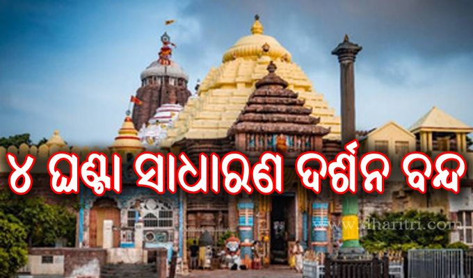 ପୁରୀ ଅଫିସ,୧୭ା୪: ସୋମବାର ୪ ଘଣ୍ଟା ବନ୍ଦ ରହିବ ଶ୍ରୀଜିଉଙ୍କ ଦର୍ଶନ। ସନ୍ଧ୍ୟା ୬ରୁ ରାତି ୧୦ ଯାଏ ଶ୍ରଦ୍ଧାଳୁମାନେ ଶ୍ରୀଜିଉଙ୍କୁ ଦର୍ଶନ କରିପାରିବେ ନାହିଁ। ଦ୍ୱିତୀୟ ଭୋଗ ପରେ ପଇତା ଲାଗି ନୀତି ଯୋଗୁ ଦର୍ଶନ ବନ୍ଦ ରହିବବୋଲି ଶ୍ରୀମନ୍ଦିର ସୂଚନା ଓ ଲୋକ ସମ୍ପର୍କ ଅଧିକାରୀ ସୂଚନା ଦେଇଛନ୍ତି।