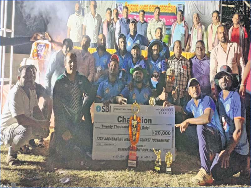 ପୁରୁଣା ଭୁବନେଶ୍ୱର,୧୩।୨ (ଡି.ଏନ.ଏ.) : ବାଙ୍କୁଆଳ ହାଇସ୍କୁଲ ପଡିଆରେ ୮ ଦିନ ଧରି ଚାଲିଥିବା ୧୨ତମ ଜଗବନ୍ଧୁ ସ୍ବାଇଁ ମେମୋରିଆଲ କ୍ରିକେଟ ଟୁର୍ନାମେଣ୍ଟ ଉଦ୍ଯାପିତ ହୋଇଯାଇଛି। ପ୍ରତିଯୋଗିତାର ଫାଇନାଲ ମ୍ୟାଚ ଶୁଆଙ୍ଗ କ୍ରିକେଟ କ୍ଲବ, ଭୁବନେଶ୍ୱର ଓ ମା’ ଭଗବତୀ କ୍ରିକେଟ କ୍ଲବ, ବାଙ୍କୁଆଳ ମଧ୍ୟରେ ହୋଇଥିଲା। ଏଥିରେ ବାଙ୍କୁଆଳ ଦଳ ପ୍ରଥମେ ବ୍ୟାଟିଂ କରିବାକୁ ଯାଇ ନିର୍ଦ୍ଧାରିତ ୨୦ ଓଭରରେ ୮ ଉଇକେଟ ହରାଇ ୧୭୯ ରନ କରିଥିଲା।