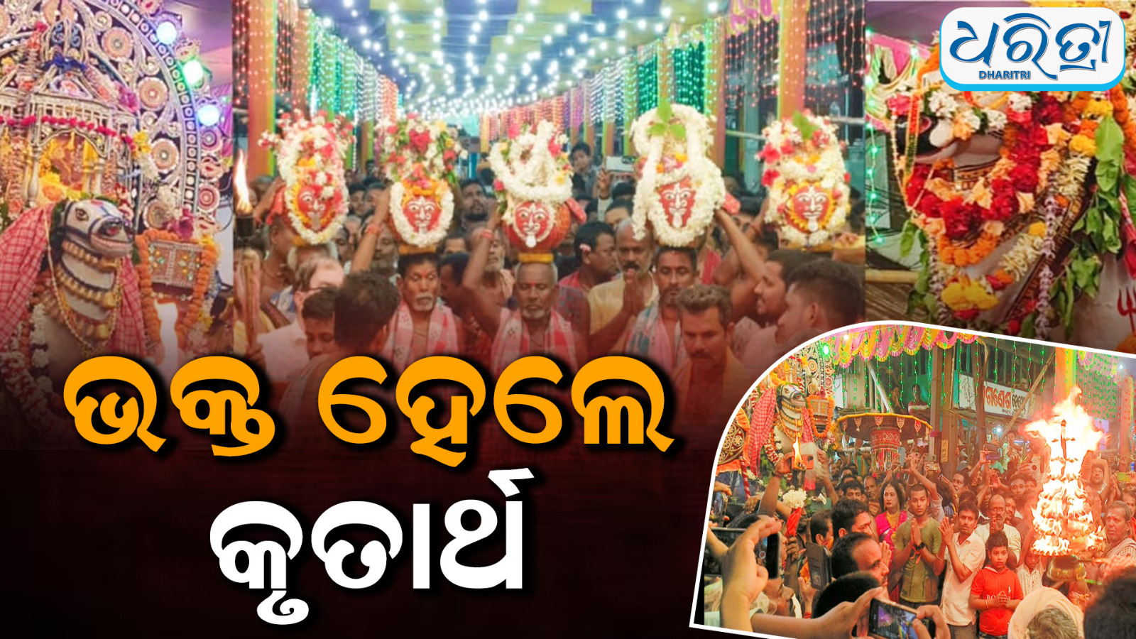 ପୁରୁଷୋତ୍ତମପୁର,୧।୬(ସୀମାଞ୍ଚଳ ମିଶ୍ର): ଗଞ୍ଜାମଜିଲା ପୁରୁଷୋତ୍ତମପୁରର ପ୍ରସିଦ୍ଧ ପଞ୍ଚ ଠାକୁରାଣୀ ଯାତ୍ରାରେ ଶନିବାର ରାତିରେ ପବିତ୍ର ଶୀତଳଷଷ୍ଠୀ ଅବସରରେ ଏକ ନିଆରା ଦୃଶ୍ୟ ଦେଖିବାକୁ ମିଳିଛି । ଯାହାକି ଦୁଇ ମହାଦେବ କପିଳେଶ୍ବର ଓ ସ୍ବପ୍ନେଶ୍ୱର ପୃଥକ ପୃଥକ ଭାବରେ ବିବାହ ଲାଗି ଶୋଭାଯାତ୍ରାରେ ଯାଉଥିବା ବେଳେ ସହର ପରିକ୍ରମାରେ ଯାଉଥିବା ପାଞ୍ଚଠାକୁରାଣୀ କନକା, କାଳୁଆ, ତାରାତାରିଣୀ, କାଳୀ ଓ ଫୁଲସୁନ୍ଦରୀଙ୍କ ସହ ରାସ୍ତାରେ ଭେଟ ହୋଇଥିଲା। ଫଳରେ ଏହି ବିରଳଦୃଶ୍ୟ ସମ୍ପୂର୍ଣ୍ଣ ଆଧ୍ୟାତ୍ମିକ ପରିବେଶ ସୃଷ୍ଟି କରିଥିଲା। ଏହି ସମୟରେ ସାତଜଣ ଦେବାଦେବୀଙ୍କ ମହାଆଳତି ଅନୁଷ୍ଠିତ ହୋଇଥିଲା। ଏହାକୁ ଦେଖିବା ସହ ଆର୍ଶିବାଦ ଭିକ୍ଷା ଲାଗି ଶହଶହ ସଂଖ୍ୟାରେ ଭକ୍ତଙ୍କ ଭିଡଜମିଥିଲା। ସାତ ଠାକୁର ଠାକୁରାଣୀଙ୍କୁ ଏକାଥରକେ ଦର୍ଶନକରି ଭକ୍ତମାନେ ସୌଭାଗ୍ୟ ମନେକରିଥିଲେ।