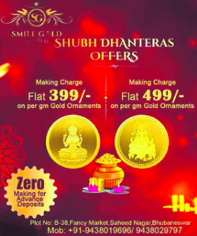 ରାଜ୍ୟର ପ୍ରମୁଖ ଅଳଙ୍କାର ପ୍ରତିଷ୍ଠାନ ସ୍ମାଇଲ୍ ଗୋଲ୍ଡ ଜୁଏଲର୍ସ ପକ୍ଷରୁ ଚଳିତ ବର୍ଷର ଧନ୍ତେରସ୍ ଉପଲକ୍ଷେ ଆକର୍ଷଣୀୟ ଧନବର୍ଷା ଅଫରର ଶୁଭାରମ୍ଭ ସମ୍ପର୍କରେ ଘୋଷଣା କରାଯାଇଛି। ସେହିଭଳି ଚଳିତ ବର୍ଷର ପାର୍ବଣ ଋତୁରେ ସ୍ବତନ୍ତ୍ର ଡିଜାଇନ୍ ସାଙ୍ଗକୁ ଆକର୍ଷଣୀୟ ଅଫର୍ ଓ ରିହାତି ପ୍ରଦାନ କରାଯାଉଛି। ଏପରିକି ଚଳିତ ବର୍ଷ ଦଶହରାଠାରୁ ଗ୍ରାହକମାନେ ଆକର୍ଷଣୀୟ ଧନବର୍ଷା ଅଫରର ଲାଭ ଉଠାଉଛନ୍ତି ବୋଲି ସ୍ମାଇଲ୍ ଗୋଲ୍ଡ ପକ୍ଷରୁ ସୂଚନା ଦିଆଯାଇଛି। ଅପରପକ୍ଷରେ ଏହି ଅଫର୍ ଧନତେରାସ୍ ପର୍ଯ୍ୟନ୍ତ ଉପଲବ୍ଧ। ବିଶେଷକରି ଧନ୍ତେରସ୍ ଅବସରରେ ଗ୍ରାହକମାନେ ପ୍ରତି ୧ ଗ୍ରାମ୍ ସୁନା ଗହଣାର ଗଢ଼ା ମଜୁରୀ ଫ୍ଲାଟ୍ ୩୯୯ ଟଙ୍କା ଓ ଫ୍ଲାଟ୍ ୪୯୯ ଟଙ୍କା ରହିଛି। ସେହିପରି ଅଳଙ୍କାର ପାଇଁ ଅଗ୍ରୀମ ଦେୟ ପୈଠ କଲେ ଗଢ଼ା ମଜୁରୀ ପଡ଼ିବ ନାହିଁ। ସ୍ବତନ୍ତ୍ର ଡିଜାଇନର ହୀରା, ସୁନା, ରୂପା ଓ ଅନ୍ୟାନ୍ୟ ରତ୍ନରେ ପ୍ରସ୍ତୁତ ଅଳଙ୍କାର ଏଠାରେ ଉପଲବ୍ଟ ବୋଲି ଷ୍ଟୋର ପକ୍ଷରୁ ସୂଚନା ଦିଅଯାଇଛି।