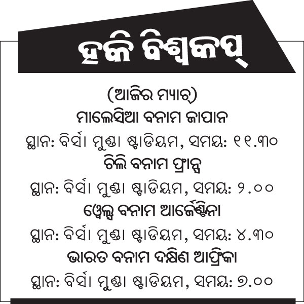 ରାଉରକେଲା ଅଫିସ/ଭୁବନେଶ୍ୱର (କ୍ରୀଡ଼ା ପ୍ରତିନିଧି), ୨୮।୧: ରାଉରକେଲାର ବିର୍ସା ମୁଣ୍ଡା ଷ୍ଟାଡିୟମରେ ଗୁରୁବାର ଅନୁଷ୍ଠିତ ହକି ବିଶ୍ୱକପ୍ କ୍ଲାସିଫିକେଶନ ମ୍ୟାଚରେ ଦକ୍ଷିଣ ଆଫ୍ରିକା, ୱେଲ୍ସ ଓ ଆର୍ଜେଣ୍ଟିନା ବିଜୟ ହାସଲ କରିଛି। ଦକ୍ଷିଣ ଆଫ୍ରିକା ୬-୩ ଗୋଲରେ ମାଲେସିଆକୁ ହରାଇଥିଲା। ବିଜୟୀ ଦଳ ପକ୍ଷରୁ ବ୍ରାଡ୍ଲି ଶେରଉଡ୍ ୯ ଓ ୫୭ତମ ମିନିଟରେ ୨ଟି ଏବଂ ଗୟ ମୋର୍ଗାନ ୧୭, ଏନ୍କୋବିଲ ଏନ୍ଟୁଲି୨୬, କିନାନ ଗ୍ରେଗ୍ ହର୍ନ ୪୩ ଓ ମୁସ୍ତାଫା କାସିମ ୪୪ତମ ମିନିଟରେ ଗୋଟିଏ ଲେଖାଏ ଗୋଲ ସ୍କୋର କରିଥିଲେ। ମାଲେସିଆ ପକ୍ଷରୁ ମହମ୍ମଦ ରାଜି ରହିମ ୩୫ ଓ ୪୫ତମ ମିନିଟରେ ୨ଟି ଏବଂ ମହମ୍ମଦ ଫିରହାନ ଅନସାରି ୫୭ତମ ମିନିଟରେ ଗୋଟିଏ ଗୋଲ ପରିଶୋଧ କରିଥିଲେ। ୱେଲ୍ସ ଓ ଫ୍ରାନ୍ସ ମଧ୍ୟରେ ଅନୁଷ୍ଠିତ ଅନ୍ୟ ଏକ ମ୍ୟାଚ ନିର୍ଦ୍ଧାରିତ ସମୟରେ ୨-୨ ଗୋଲରେ ବରାବର ରହିଥିଲା। ଫଳାଫଳ ନିର୍ଣ୍ଣୟ ପାଇଁ ପେନାଲ୍ଟି ଶୁଟ୍ଆଉଟର ସହାୟତା ନିଆଯାଇଥିଲା। ଏହି ପର୍ଯ୍ୟାୟରେ ୱେଲ୍ସ ୨-୧ ଗୋଲରେ ଫ୍ରାନ୍ସକୁୁ ପରାସ୍ତ କରିଥିଲା। ପ୍ରଥମଥର ପାଇଁ ବିଶ୍ୱକପ ଖେଳିବା ସୁଯୋଗ ପାଇଥିବା ୱେଲ୍ସର ଚଳିତ ଟୁର୍ନାମେଣ୍ଟରେ ଏହାଥିଲା ପ୍ରଥମ ବିଜୟ। ଅନ୍ୟ ଏକ କ୍ଲାସିଫିକେଶନ ମ୍ୟାଚରେ ଆର୍ଜେଣ୍ଟିନା ୮-୦ ଗୋଲରେ ଚିଲିକୁ ହରାଇ ଦେଇଥିଲା। ବିଜୟୀ ଦଳ ପକ୍ଷରୁୁ ମାଇକୋ କାସେଲା ୧୭ ଓ ୩୪ତମ ମିନିଟରେ ୨ଟି, ନିକୋଲାସ ଡେଲା ଟୋରେ ୯ମ, ଲୁକାସ ଟୋସକାନି ୧୯, ବୌଟିଷ୍ଟା କାପୁରୋ ୨୩, ନିକୋଲାସ ସାଣ୍ଟିଆଗୋ କିନାନ ୨୫, ମାର୍ଟିିନ ଇଗ୍ନାସିଓ ଫେରେରୋ ୫୧ ଓ ଟୋମାସ ମାଇକେଲ ଡୋମେନେ ୫୬ତମ ମିନିଟରେ ଗୋଟିଏ ଲେଖାଏ ଗୋଲ ଦେଇଥିଲେ। ୯ରୁ ୧୨ତମ ସ୍ଥାନ ପାଇଁ କ୍ଲାସିଫିକେଶନ ମ୍ୟାଚରେ ୱେଲ୍ସକୁ ଆର୍ଜେଣ୍ଟନା ଭେଟିବ।