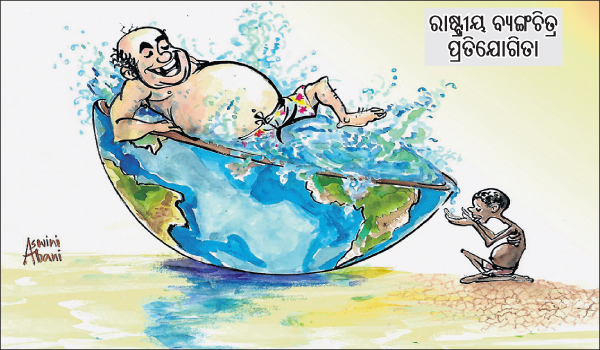 ବଲାଙ୍ଗୀର ଅଫିସ, ୬ା୬: ଛତିଶଗଡ଼ ପରିବେଶ ସଂରକ୍ଷଣ ମଣ୍ଡଳ ଏବଂ ରାୟପୁର(ଛତିଶଗଡ଼)ରୁ ପ୍ରକାଶିତ ମାସିକ କାର୍ଟୁନ୍ ପତ୍ରିକା ‘କାର୍ଟୁନ୍ ୱାଚ୍’ର ମିଳିତ ଆବାହକତ୍ୱରେ ଆୟୋଜିତ ସର୍ବଭାରତୀୟସ୍ତରୀୟ କାର୍ଟୁନ୍ ପ୍ରତିଯୋଗିତାରେ ଓଡ଼ିଶାର କାର୍ଟୁନିଷ୍ଟ ଭ୍ରାତୃଦ୍ୱୟ ଅଶ୍ୱିନୀ-ଅବନୀଙ୍କ ଏକ କାର୍ଟୁନ୍ ସ୍ବତନ୍ତ୍ର ପୁରସ୍କାର ଲାଭ କରିଛି। ଚଳିତ ବର୍ଷ ବିଶ୍ୱ ପରିବେଶ ଦିବସ ପାଳନ ଅବସରରେ ଆୟୋଜିତ ପ୍ରତିଯୋଗିତା ‘ଲାଇଫ୍ ଷ୍ଟାଇଲ ଫର୍ ଏନ୍ଭାଇରନ୍ମେଣ୍ଟ’ ବିଷୟବସ୍ତୁ ଉପରେ ଆଧାରିତ ଥିଲା। ପୁରସ୍କୃତ ହୋଇଥିବା ଅଶ୍ୱିନୀ-ଅବନୀଙ୍କ ବ୍ୟଙ୍ଗଚିତ୍ରରେ ବିଶ୍ୱସ୍ତରରେ ଅମୂଲ୍ୟ ଜଳ ସମ୍ପଦର ଜୀବନଯାପନ ଶୈଳୀଜନିତ ଦୁରୁପଯୋଗ ତଥା ଏହାର କରୁଣ ଭବିଷ୍ୟତ ସମ୍ପର୍କରେ ଏକ ଶାଣିତ ବ୍ୟଙ୍ଗାମତ୍କ ଅବଧାରଣା ପ୍ରଦାନ କରାଯାଇଛି।