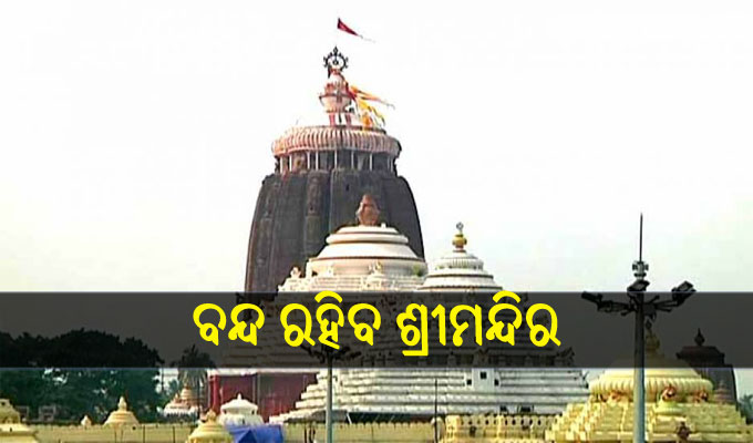 ପୁରୀ ଅଫିସ,୭।୧: ଆସନ୍ତା ସୋମବାରଠାରୁ ଭକ୍ତଙ୍କ ଲାଗି ବନ୍ଦ ରହିବ ଶ୍ରୀମନ୍ଦିର। କରୋନା ସଂକ୍ରମଣ ବୃଦ୍ଧି ପାଉଥିବାରୁ ଏଭଳି ନିଷ୍ପତ୍ତି ନିଆଯାଇଛି। ଜାନୁୟାରୀ ୩୧ ଯାଏ ଏହି କଟକଣା ରହିବ। ଶୁକ୍ରବାର ଛତିଶା ନିଯୋଗ- ଶ୍ରୀମନ୍ଦିର ପ୍ରଶାସନ ବୈଠକରେ ବନ୍ଦ ଲାଗି ନିଷ୍ପତ୍ତି ନିଆଯାଇଛି ବୋଲି ପୁରୀ ଜିଲାପାଳ ସମର୍ଥ ବର୍ମା ସୂଚନା ଦେଇଛନ୍ତି।