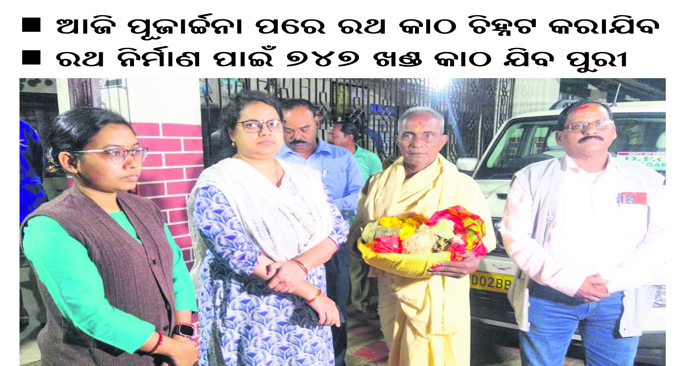 ନୟାଗଡ଼ ଅଫିସ/ପୁରୀ ଅଫିସ,୨୭ା୧୨:ବିଶ୍ୱପ୍ରସିଦ୍ଧ ମହାପ୍ରଭୁଙ୍କ ରଥଯାତ୍ରା ଉଦ୍ଦେଶ୍ୟରେ ରଥକାଠ ନିମନ୍ତେ ପୁରୀର ଶ୍ରୀମନ୍ଦିରରୁ ପ୍ରତିନିଧିମଣ୍ଡଳୀ ପ୍ରଭୁଙ୍କ ଅଙ୍ଗବସ୍ତ୍ର, ପାଟପତନୀ, ଧଣ୍ଡାମାଳ, ନଡ଼ିଆ, ବାନା, ଆଜ୍ଞାମାଳ ସାଙ୍ଗରେ ଧରି ସୋମବାର ସନ୍ଧ୍ୟାରେ ନୟାଗଡ଼ ଡିଏଫ୍ଓ ଅଫିସରେ ପହଞ୍ଚତ୍ଛନ୍ତି। ଶ୍ରୀମନ୍ଦିର ପ୍ରଶାସନର ବରିଷ୍ଠ ତତ୍ତ୍ୱାଧାରକ ସୁଦର୍ଶନ ମେକାପ, ରଥକାଠ ଅମିନ ଲକ୍ଷ୍ମଣ ମହାପାତ୍ର, ଭୋଇ ସର୍ଦ୍ଦାର ରବି ଭୋଇ ପ୍ରମୁଖ ୩ ଜଣିଆ ଦଳ ଆସିଛନ୍ତି। ନୟାଗଡ଼ ଡିଏଫ୍ଓ କ୍ଷମା ଷଡ଼ଙ୍ଗୀ ସେମାନଙ୍କୁ ସ୍ବାଗତ କରିଛନ୍ତି। ୨୦୨୩ ବର୍ଷ ୩ ରଥ ନିର୍ମାଣ ପାଇଁ ୮୬୫ ଖଣ୍ଡ କାଠର ଆବଶ୍ୟକତା ଥିବାବେଳେ ୧୧୮ ଖଣ୍ଡ ବଳକା ରହିଛି। ଅବଶିଷ୍ଟ ୭୪୭ ଖଣ୍ଡ କାଠ ନୟାଗଡ଼ ଓ ବୌଦ୍ଧ ବନଖଣ୍ଡରୁ ଯିବ। ଏଥିରୁ ୪୦୬ଖଣ୍ଡ କଟକର ସ’ ମିଲ୍ ଓ ୩୪୧ ଖଣ୍ଡ ରଥଖଳାକୁ ଯିବ। ତେବେ ଦୁଇ ବନଖଣ୍ଡରୁ ୧୨ ଫୁଟ ଲମ୍ବ ୩ ଫୁଟ ଓସାରର ଅସନ ୧୮୪ ଖଣ୍ଡ, ୧୨ ଫୁଟ ଲମ୍ବ ୩ ଫୁଟ ଓସାରର ଧଉରା ୧୯୪ ଖଣ୍ଡ, ୨୦ ଫୁଟ ଲମ୍ବ ୩ ଫୁଟ ଓସାରର ଅସନ ୮୨ ଖଣ୍ଡ, ଧଉରା କାଠ ୨୦ ଫୁଟ ଲମ୍ବ ୩ ଫୁଟ ଓସାରର ୯୪ ଖଣ୍ଡ, ୨୦ ଫୁଟ ଲମ୍ବ ୪ ଫୁଟ ଓସାରର ୧୨ ଖଣ୍ଡ ଧଉରା, ୨୦ ଫୁଟ ଲମ୍ବ ୬ ଫୁଟ ଓସାରର ୬ ଖଣ୍ଡ ଧଉରା, ୪୦ ଫୁଟ ଲମ୍ବ ୩ ଫୁଟ ଓସାରର ୪୩ ଖଣ୍ଡ ଅସନ, ୪୦ ଫୁଟ ଲମ୍ବ ୩ ଫୁଟ ଓସାରର ୪୩ ଖଣ୍ଡ ଧଉରା, ୪୦ ଫୁଟ ଲମ୍ବ ୩ ଫୁଟ ୬ ଇଞ୍ଚ ଓସାରର ଧଉରା କାଠ ୨୧, ୪୦ ଫୁଟ ଲମ୍ବ ୪ ଫୁଟର ଓସାରର ୬ ଖଣ୍ଡ ଧଉରା, ୧୪ ଫୁଟ ଲମ୍ବ ୬ ଫୁଟ ଓସାର ୭୨ ଖଣ୍ଡ ଫାସି, ସିମୁଳି କାଠ ୧୪ ଫୁଟ ଲମ୍ବ ୬ ଫୁଟ ଓସାରର ୩ ଖଣ୍ଡ ଦିଆଯିବ। ଏ ନେଇ ମଙ୍ଗଳବାର ପୂର୍ବାହ୍ନରେ ଦଶପଲ୍ଲା ପୁରାତନ ଗଡ଼ଜାତ ରାଜ୍ୟର ଗଣିଆ ନିକଟବର୍ତ୍ତୀ ମହାନଦୀ ଅବବାହିକାର ବଡ଼ମୂଳସ୍ଥ ଗ୍ରାମଦେବୀ ମା’ ବଡ଼ରାଉଳଙ୍କ ପୀଠରେ ବିଧି ଅନୁଯାୟୀ ପୂଜାର୍ଚ୍ଚନା କରାଯିବାକୁ ନୀତି ନିର୍ଘଣ୍ଟ ହୋଇଛି। ସୋମବାରଠାରୁ ରଥଯାତ୍ରା ପାଇଁ ପ୍ରସ୍ତୁତି ଆରମ୍ଭ ହୋଇଛି। ଆସନ୍ତା ଶ୍ରୀପଞ୍ଚମୀ ତିଥି ପୂର୍ବରୁ ପ୍ରଥମ ପର୍ଯ୍ୟାୟ କାଠ ନୟାଗଡ଼ରୁ ଯିବ। ଶେଷ ପର୍ଯ୍ୟାୟ ଅକ୍ଷୟତୃତୀୟା ତିଥିରେ ସମସ୍ତ ଆବଶ୍ୟକ କାଠ ପୁରୀରେ ପହଞ୍ଚତ୍ବ। ଏ ସମ୍ପର୍କରେ ଡିଏଫ୍ଓ ଷଡ଼ଙ୍ଗୀ କୁହନ୍ତି, ନୟାଗଡ଼ ବନଖଣ୍ଡରୁ କେତେକାଠ ଯିବ ନିଷ୍ପତ୍ତି ହୋଇନି। ତେବେ ଏ ନେଇ ଖୁବ୍ଶୀଘ୍ର ନିଷ୍ପତ୍ତି ନିଆଯିବ। ପ୍ରକାଶଥାଉ କି, ପୁରୀର ଗଜପତି ମୁକୁନ୍ଦ ଦେବଙ୍କ ଅମଳ ଅର୍ଥାତ୍ ଦଶପଲ୍ଲା ଗଡ଼ଜାତ ରାଜ୍ୟ ୭ତମ ରାଜା ଚକ୍ରଧର ଭଞ୍ଜଦେଓଙ୍କ ସମୟରୁ ଦୀର୍ଘ ୩୫୨ ବର୍ଷ ହେଲା ରଥକାଠ ଯୋଗାଣ ପରମ୍ପରା ରହିଆସିଛି। ପୂର୍ବେ ମହାନଦୀରେ ଭେଳା କରି ରଥକାଠ ନିଆଯାଉଥିବା ବେଳେ ସ୍ବାଧୀନତା ପରେ ଟ୍ରକ୍ ସହାୟତାରେ ବଡ଼ ବଡ଼ ରଥକାଠ ପରିବହନ କରାଯାଉଛି।