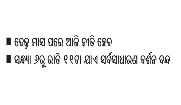ପୁରୀ,୯ା୮(ଅଜିତ ମହାନ୍ତି): ଦୀର୍ଘ ଦେଢ଼ ମାସ ଧରି ମହାପ୍ରଭୁଙ୍କ ବନକଲାଗି ହେବାକୁ ନେଇ ଲାଗିରହିଥିବା ବିବାଦ ଶେଷରେ ମଙ୍ଗଳବାର ସମାଧାନ ହୋଇଛି। ତେବେ ଶ୍ରୀବିଗ୍ରହମାନଙ୍କ ବୁଧବାର ବନକଲାଗି ନୀତି ହେବାକୁ ଯାଉଛି। ଏ ନେଇ ଶ୍ରୀମନ୍ଦିର ପ୍ରଶାସନ ପକ୍ଷରୁ ମଙ୍ଗଳବାର ସୂଚନା ଦିଆଯାଇଛି। ଅପରପକ୍ଷେ ମହାପ୍ରଭୁଙ୍କ ବନକଲାଗି ନୀତି କରୁଥିବା ଦତ୍ତ ମହାପାତ୍ର ସେବକମାନେ ମଧ୍ୟ ପ୍ରଶାସନ ପକ୍ଷରୁ ହୋଇଥିବା ନିଷ୍ପତ୍ତିରେ ସହମତି ପ୍ରକାଶ କରି ବୁଧବାର ବନକଲାଗି କରିବା ପାଇଁ ପ୍ରସ୍ତୁତ ହୋଇଛନ୍ତି। ବନକଲାଗି ନ ହେବା କାରଣରୁ ମହାପ୍ରଭୁଙ୍କ ଶ୍ରୀମୁଖ ଆସ୍ତେ ଆସ୍ତେ ମଳିନ ପଡୁଥିବା ନେଇ ଭକ୍ତଙ୍କ ମଧ୍ୟରେ ଅସନ୍ତୋଷ ଦେଖାଯାଉଥିବା ବେଳେ ମହାପ୍ରଭୁଙ୍କ ଶ୍ରୀମୁଖକୁ ବିପଦଥିବା ସେବାୟତମାନେ ଚିନ୍ତା ପ୍ରକଟ କରିଥିଲେ। ପରେ ବହୁ ଆଲୋଚନା ପର୍ଯ୍ୟାଲୋଚନା କରାଯାଇ ଶେଷରେ ଶ୍ରୀମନ୍ଦିର ପ୍ରଶାସନର ସୂଚନା ଓ ଲୋକ ସମ୍ପର୍କ ବିଭାଗ ପକ୍ଷରୁ ୯ତାରିଖ (ବୁଧବାର) ବନକଲାଗି ହେବ ବୋଲି ସୂଚନା ଦିଆଯାଇଛି। ଏ ନେଇ ଶ୍ରୀମନ୍ଦିର ନୀତି ପ୍ରଶାସକ ଜିତେନ୍ଦ୍ର କୁମାର ସାହୁ କହିଛନ୍ତି, ମହାପ୍ରଭୁଙ୍କ ବନକଲାଗି ବୁଧବାର କରିବା ପାଇଁ ଦତ୍ତ ମହାପାତ୍ର ନିଯୋଗକୁ ସୂଚନା ଦିଆଯାଇଛି। ନିଯୋଗଠାରୁ ବନକଲାଗି ପାଇଁ ଆବଶ୍ୟକ ସାମଗ୍ରୀକୁ ଦତ୍ତମହାପାତ୍ରମାନେ ନେଇଛନ୍ତି। ଶ୍ରୀମନ୍ଦିର ପରମ୍ପରା ଅନୁସାରେ ଶ୍ରୀମନ୍ଦିରରେ ଶ୍ରୀବିଗ୍ରହଙ୍କ ଦ୍ୱିତୀୟ ଭୋଗ ମଣ୍ଡପ ପରେ ବନକଲାଗି ଅନୁଷ୍ଠିତ ହେବ। ସନ୍ଧ୍ୟା ୬ଟାରୁ ରାତି ୧୧ଟା ପର୍ଯ୍ୟନ୍ତ ୫ଘଣ୍ଟା ନୀତି ଅନୁଷ୍ଠିତ ହେବ। ତେବେ ବନକଲାଗି ଗୁପ୍ତ ନୀତି ହୋଇଥିବାରୁ ଏହି ସମୟରେ ସର୍ବସାଧାରଣ ଦର୍ଶନ ବନ୍ଦ ରହିବ।