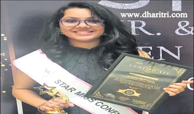 ଭୁବନେଶ୍ୱର, ୯।୮(ବ୍ୟୁରୋ): ଜାତୀୟସ୍ତରୀୟ ପ୍ରତିଯୋଗିତା ‘ଷ୍ଟାର୍ ମିଷ୍ଟର ଆଣ୍ଡ୍ ମିସ୍ ଟିନ୍ ଇଣ୍ଡିଆ’ରେ ପ୍ରତିଭା ପ୍ରଦର୍ଶନ କରି ଟାଇଟଲ୍ ହାସଲ କରିଛନ୍ତି ଭୁବନେଶ୍ୱରର ଝିଅ ଆୟତୀ ପଟ୍ଟନାୟକ। ନୂଆଦିଲ୍ଲୀର ଷ୍ଟାର୍ ଏଣ୍ଟରଟେନ୍ମେଣ୍ଟ ପ୍ରଡକ୍ସନ ପକ୍ଷରୁ ନିକଟରେ ରାଜସ୍ଥାନର ଜୟପୁର ସହରରେ ଆୟୋଜିତ ଏହି ପ୍ରତିଯୋଗିତାରେ ସେ ‘ଷ୍ଟାର ମିସ୍ କନ୍ଫିଡେଣ୍ଟ’ ହୋଇଛନ୍ତି। ନୀଳକଣ୍ଠ ପଟ୍ଟନାୟକ ଓ ନିହାରିକା ପଟ୍ଟନାୟକଙ୍କ ୧୪ବର୍ଷିୟା ଝିଅ ଆୟତୀ ଏଥ୍ନିକ୍, ଟ୍ୟାଲେଣ୍ଟ ଓ ରିଜିଓନାଲ୍ ରାଉଣ୍ଡରେ ଭଲ ପ୍ରଦର୍ଶନ କରି ଓଡ଼ିଶା ପାଇଁ ଏହି ଗୌରବ ଆଣିିଛନ୍ତି।