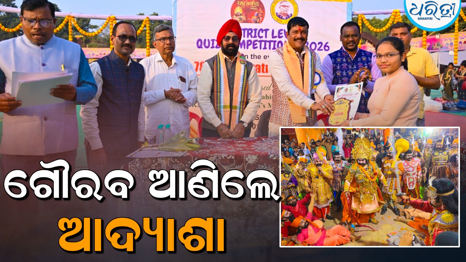 ମଥୁରାନଗରୀ,୨।୧(ପ୍ରେମାନନ୍ଦ ଖମାରୀ): ବରଗଡ଼ର ବିଶ୍ୱପ୍ରସିଦ୍ଧ ଧନୁଯାତ୍ରା ଐତିହ୍ୟ ଓ ପରମ୍ପରାକୁ ବର୍ତ୍ତମାନର ଛାତ୍ରୀଛାତ୍ରମାନଙ୍କୁ ଅବଗତ କରାଇବା ପାଇଁ ସ୍ଥାନୀୟ ଲେଙ୍ଗୁମିଶ୍ର ଷ୍ଟାଡିୟମରେ ଆୟୋଜିତ ହସ୍ତତନ୍ତ ମେଳା ପରିସରରେ ରାଜ୍ୟସ୍ତରୀୟ ପଞ୍ଚମ ଧନୁଯାତ୍ର କୁଇଜ୍ ପ୍ରତିଯୋଗିତା ଗୁରୁବାର ଅନୁଷ୍ଠିତ ହେଇଯାଇଛି। ମହତାବ ଶିଶୁ ସାହିତ୍ୟ ସଂସଦ ଓ ଶିଶୁ ସାହିତ୍ୟ ପତ୍ରିକା ‘କଳାମାଣିକ’ ଆନୁକୂଲ୍ୟରେ ଆୟୋଜିତ ତଥା ସାହିତି୍ୟକ ମନୋରଞ୍ଜନ ମେହେରଙ୍କ ଅଧ୍ୟକ୍ଷତାରେ ଅନୁଷ୍ଠିତ ଉକ୍ତ କାର୍ଯ୍ୟକ୍ରମରେ ବରଗଡ଼ ଏମ୍ପି ପ୍ରଦୀପ ପୁରୋହିତ ମୁଖ୍ୟ ଅତିଥି ଭାବେ ଯୋଗଦେଇ ଉକ୍ତ ପ୍ରତିଯୋଗିତାର ପ୍ରଶଂସା କରିବା ସହିତ ବରଗଡ଼ର ବିଶ୍ବପ୍ରସିଦ୍ଧ ଧନୁଯାତ୍ରାର ଇତିହାସ ବିଷୟରେ ଅବଗତ ହେବାକୁ ସମସ୍ତଙ୍କୁ ଆହ୍ବାନ ଦେଇଥିଲେ। ସମ୍ମାନିତ ଅତିଥି ଭାବେ ଜିଲା ସୂଚନା ଓ ଲୋକସମ୍ପର୍କ ଅଧିକାରୀ ପ୍ରହଲ୍ଲାଦ ଖୋସଲା ଯୋଗଦେଇ ଛାତ୍ରୀଛାତ୍ରମାନେ ଆମର ସମୃଦ୍ଧ ଐତିହ୍ୟ ଓ ସଂସ୍କୃତି ବିଷୟ ପ୍ରତି ଆନ୍ତରିକତା ପ୍ରଦର୍ଶନ କରିବାକୁ ପରାମର୍ଶ ଦେଇଥିଲେ। ଅନ୍ୟମାନଙ୍କ ମଧ୍ୟରେ ପ୍ରିତମ ସିଂ, ଅବସରପ୍ରାପ୍ତ ପ୍ରଧାନ ଶିକ୍ଷୟିତ୍ରୀ ଦିବ୍ୟକାନ୍ତି ଭୋଇ, ମୀନା ପଣ୍ଡା, ଶିକ୍ଷକ ଦୁଃଖିସେବକ ସାହୁ, ସାହିତି୍ୟକା ସୁପ୍ରଭା ସାମଲ, ସାମାଜିକ କର୍ମୀ ସଂଘମିତ୍ରା ପଟେଲ ଓ ଶିକ୍ଷୟିତ୍ରୀ ମଞ୍ଜୁଲତା ସାହୁ ପ୍ରମୁଖ ସହଯୋଗ କରିଥିଲେ। ଉକ୍ତ ପ୍ରତିଯୋଗିତାର ସିନିଅର ବିଭାଗରେ ଯୁବୋଦୟ କଲେଜ ବଲାଙ୍ଗୀରର ଛାତ୍ରୀ ଆଦ୍ୟାଶା ପ୍ରଧାନ ପ୍ରଥମ, ରେଭେନ୍ସା ମହାବିଦ୍ୟାଳୟର ଛାତ୍ର ଆୟାଶ ପଣ୍ଡା ଦ୍ୱିତୀୟ ଓ ଓଡ଼ିଶା ଆଦର୍ଶ ବିଦ୍ୟାଳୟ କନଗାଁର ଛାତ୍ରୀ ଶ୍ରୀୟା ବାରିକ ତୃତୀୟ ଏବଂ ଜୁନିଅର ବିଭାଗରେ ଗୋବିନ୍ଦପାଲି ଉଚ୍ଚ ପ୍ରାଥମିକ ବିଦ୍ୟାଳୟର ଅଂଶୁମାନ ଦାସ ପ୍ରଥମ, ସିମେଣ୍ଟ ନଗର ଇଂରାଜୀ ମାଧ୍ୟମ ବିଦ୍ୟାଳୟର ଅସ୍ମିତା ପଟ୍ଟନାୟକ ଦ୍ବିତୀୟ ଓ ଶ୍ରୀଅରବିନ୍ଦ ସ୍କୁଲର ଛାତ୍ର ସ୍ମୃତି ରଞ୍ଜନ ସାହୁ ତୃତୀୟ ସ୍ଥାନ ଅଧିକାର କରି ପୁରସ୍କୃତ ହୋଇଥିଲେ। ସମ୍ପାଦକ ଡ. ରବିନାରାୟଣ ସାହୁ କାର୍ଯ୍ୟକ୍ରମ ପରିଚାଳନା ଓ ଆବାହକ ରାଜେନ୍ଦ୍ର ଚୌଧୁରୀ ଧନ୍ୟବାଦ ଅର୍ପଣ କରିଥିଲେ।