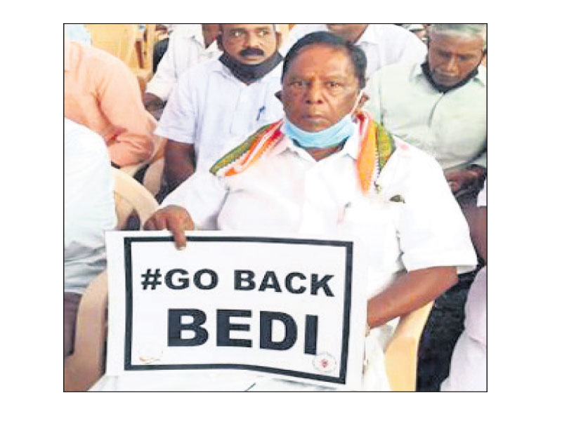 ପୁଡ଼ୁଚେରୀ, ୧୧।୧: ଉପରାଜ୍ୟପାଳ କିରଣ ବେଦୀଙ୍କ ବହିଷ୍କାର ଦାବିରେ ପୁଡ଼ୁଚେରୀ ମୁଖ୍ୟମନ୍ତ୍ରୀ ଭି. ନାରାୟଣସ୍ବାମୀଙ୍କ ଧାରଣା ରବିବାର ତୃତୀୟ ଦିନରେ ପହଞ୍ଚତ୍ଛି। ସେ ବେଦୀଙ୍କ ସରକାରୀ ବାସଭବନ ନିକଟରେ ବସି ରହିଛନ୍ତି। ଆସନ୍ତା ମେ’ ମାସରେ ପୁଡ଼ୁଚେରୀ ବିଧାନସଭା ନିର୍ବାଚନ ଥିବାବେଳେ ମୁଖ୍ୟମନ୍ତ୍ରୀ ଓ ଉପରାଜ୍ୟପାଳଙ୍କ ମଧ୍ୟରେ ଦୀର୍ଘଦିନ ହେଲା ବିବାଦ ଲାଗି ରହିଛି। ବେଦୀ ପୁଡ଼ୁଚେରୀ ବିକାଶରେ ପ୍ରତିବନ୍ଧକ ସୃଷ୍ଟି କରୁଥିବା ନାରାୟଣସ୍ବାମୀ ଅଭିଯୋଗ କରିଛନ୍ତି।