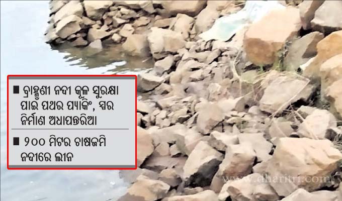 ପଟ୍ଟାମୁଣ୍ଡାଇ,୨୬ା୯(ସ୍ବ.ପ୍ର.): କେନ୍ଦ୍ରାପଡ଼ା ଜିଲା ପଟ୍ଟାମୁଣ୍ଡାଇ ବ୍ଲକରେ ପ୍ରବାହିତ ଚିରସ୍ରୋତା ବ୍ରାହ୍ମଣୀ ନଦୀର ପ୍ରଖର ସ୍ରୋତରେ ପ୍ରତିବର୍ଷ କୂଳରୁ ଅତଡା ଖାଉଛି। ଏହାର ସୁରକ୍ଷା ପାଇଁ ନାର୍ବାଡ ପକ୍ଷରୁ ୧୭ କୋଟି ୮୩ ଲକ୍ଷ ୩୪ହଜାରେ ଟଙ୍କା ବ୍ୟୟ ଅଟକଳରେ ପଟ୍ଟାମୁଣ୍ଡାଇ ବ୍ଲକ ଶ୍ରୀରାମପୁର ପଞ୍ଚାୟତ ପାଳପାଟଣା ଗ୍ରାମ ନିକଟ ବ୍ରାହ୍ମଣୀ ନଦୀ କୂଳରେ ପଥର ପ୍ୟାକିଂ ଓ ସ୍ପର ନିର୍ମାଣ ହୋଇଥିଲା। ଏହି କାର୍ଯ୍ୟ ଅଧାପନ୍ତରିଆ ହୋଇଥିବା ସ୍ଥାନୀୟ ଗ୍ରାମବାସୀ ଅଭିଯୋଗ କରିଛନ୍ତି। ଏଥିସହ ଅଗଷ୍ଟ ମାସରେ ବ୍ରାହ୍ମଣୀ ନଦୀରେ ପ୍ରଖର ବନ୍ୟା ସ୍ରୋତରେ ପଥର ପ୍ୟାକିଂ କେତେକ ସ୍ଥାନରେ ଭାଙ୍ଗି ଯାଇଛି। ବହୁ ସ୍ଥାନ ବାଲିରେ ପୋତି ହୋଇପଡିଛି। ନିର୍ମିତ ସ୍ପର ମଧ୍ୟରୁ ୩ଟି ଦବି ଯାଇଛି।