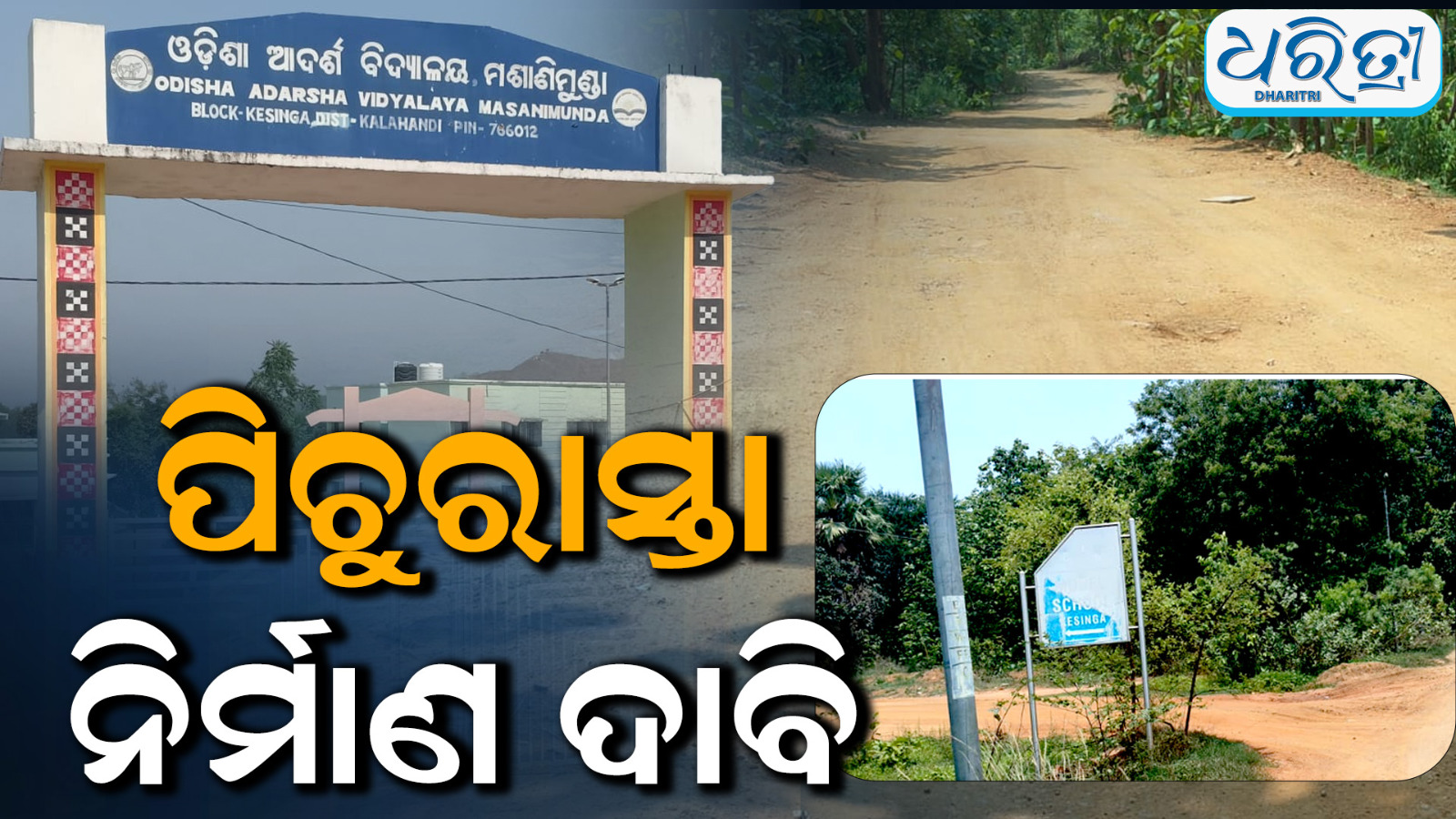 କେସିଙ୍ଗା,୧୦।୬(ତୁମେଶ୍ବର ସାହୁ):କଳାହାଣ୍ଡି ଜିଲା କେସିଙ୍ଗା ବ୍ଲକ ଲଇତରା ଗ୍ରାମ ସ୍ଥିତ ମଶାଣିମୁଣ୍ଡା ଗ୍ରାମ ନିକଟରେ ରାଜ୍ୟ ସରକାରଙ୍କ ପକ୍ଷରୁ ଗତ ୨୦୧୬ -୧୭ ମସିହାରେ ଓଡିଶା ଆଦର୍ଶ ବିଦ୍ୟାଳୟ ଖୋଲାଯାଇଛି। ଏହି ବିଦ୍ୟାଳୟରେ ଷଷ୍ଠରୁ ପ୍ଲସ -୨ ଯାଏ ଖୋଲା ଯାଇଛି। ଏହି ବିଦ୍ୟାଳୟରେ ପ୍ରାୟ ୫୦୦ ଜଣ ଛାତ୍ରୀଛାତ୍ର ଅଧ୍ୟୟନରତ ଅଛନ୍ତି। କେସିଙ୍ଗା ବ୍ଳକର ବହୁ ଦୂରରୁ ବିଭିନ୍ନ ଗ୍ରାମରୁ ଛାତ୍ରୀଛାତ୍ରମାନେ ଅଧ୍ୟୟନ ପାଇଁ ଏହି କଚ୍ଚା ରାସ୍ତା ଦେଇ ଯିବାଆସିବା କରୁଛନ୍ତି।