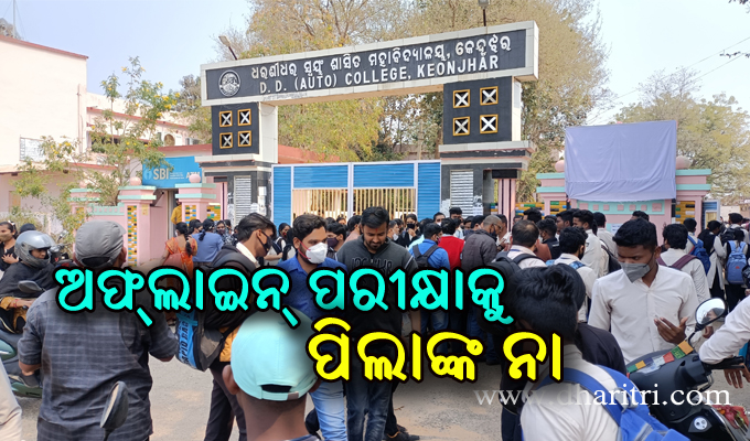 କେନ୍ଦୁଝର,୧୭ା୨(ସ୍ବ.ପ୍ର.): ଅନ୍ଲାଇନ୍ ପରୀକ୍ଷା ଦାବିରେ ଗୁରୁବାର ସ୍ଥାନୀୟ ଧରଣୀଧର ସ୍ବୟଂ ଶାସିତ ମହାବିଦ୍ୟାଳୟର ଯୁକ୍ତତିନି ଶେଷବର୍ଷ ଛାତ୍ରୀଛାତ୍ର ମୁଖ୍ୟ ଫାଟକ ଆଗରେ ଧାରଣା ଦେଇଛନ୍ତି। ପରେ ଅଧ୍ୟକ୍ଷ ନରେନ୍ଦ୍ର ସାହୁ ଓ ଅନ୍ୟ ଅଧ୍ୟାପକମାନେ ଆସି ବୁଝାଶୁଝା କରିଥିଲେ। ଅନ୍ଲାଇନ୍ରେ ପାଠପଢ଼ା ହୋଇଥିବାରୁ ପରୀକ୍ଷା ଅନ୍ଲାଇନରେ କରିବାକୁ ଦାବି କରିଥିଲେ। ତେବେ ଅଫ୍ ଲାଇନରେ ପରୀକ୍ଷା ହେବ ନେଇ ସରକାରଙ୍କ ଆଦେଶନାମା ହୋଇଥିବା ନେଇ ଅଧ୍ୟକ୍ଷ ପିଲାଙ୍କୁ ବୁଝାଇବା ପରେ ଆନ୍ଦୋଳନରୁ ଉଠିଥିଲେ।