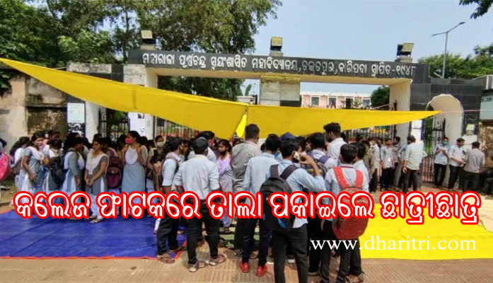 ବାରିପଦା ଅଫିସ,୪ା୧୦: ମୟୂରଭଞ୍ଜ ଜିଲା ବାରିପଦା ତକଖତପୁରସ୍ଥିତ ଏମ୍‌ପିସି ଅଟୋନମସ କଲେଜ ମୁଖ୍ୟ ଫାଟକରେ ତାଲା ପକାଇ ଶତାଧିକ ଛାତ୍ରୀଛାତ୍ର  ଧାରଣାରେ ବସିଛନ୍ତି। କରୋନା ମହାମାରୀ ସମୟରେ କଲେଜ ପକ୍ଷରୁ ରି ଆଡ଼ମିଶନ ଫି ହ୍ରାସ କରିବା ଦାବିରେ ଶତାଧିକ ଛାତ୍ରୀଛାତ୍ର ଏହି ଧାରଣାରେ ସାମିଲ ହୋଇଛନ୍ତି। ଗେଟ୍‌ରେ ତାଲା ପଡ଼ିଥିବା ଯୋଗୁ କଲେଜ କାର୍ଯ୍ୟ ସମ୍ପୂର୍ଣ୍ଣ ଠପ୍‌ ହୋଇପଡ଼ିଛି। ଆଡ଼ମିଶନ ଫି’କୁ ୬୦% ପ୍ରତିଶତ ଛାଡ଼ କରିବା ପାଇଁ ଛାତ୍ରୀଛାତ୍ର ଦାବି କରିଛନ୍ତି। ତେବେ ଏ ନେଇ ସରକାରଙ୍କୁ ଜଣାଇଲା ପରେ ସ୍ଥାୟୀ ପ୍ରତିକାର କରାଯିବ ବୋଲି ଅଧ୍ୟକ୍ଷା ପଦ୍ମଶ୍ରୀ ଡ. ଦମୟନ୍ତୀ ସିଂ କହିଛନ୍ତି।
