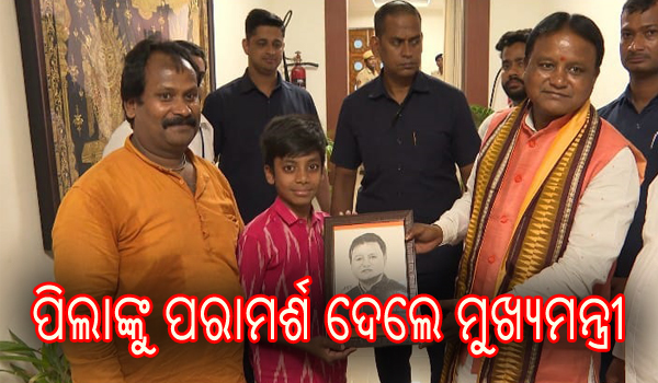 ଭଞ୍ଜନଗର,୧୭।୬(ବାବୁଲା ପ୍ରଧାନ): ଗଞ୍ଜାମ ଜିଲା ସୋରଡ଼ା ପାଇକ ସାହିର ଭଗବାନ ସାହୁଙ୍କ ପୁଅ ତଥା ସୋରଡ଼ା ଶଶୀଭୂଷଣ ଉଚ୍ଚ ବିଦ୍ୟାଳୟର ସପ୍ତମ ଶ୍ରେଣୀ ଛାତ୍ର ଶୁଭମ୍ ସାହୁ ସୋମବାର ମୁଖ୍ୟମନ୍ତ୍ରୀ ମୋହନ ମାଝୀଙ୍କୁ ରାଜ୍ୟ ଅତିଥି ଭବନରେ