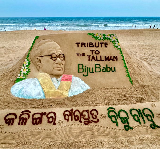 ଭୁବନେଶ୍ୱର,୫।୩: ଓଡ଼ିଶାର ପୂର୍ବତନ ମୁଖ୍ୟମନ୍ତ୍ରୀ ତଥା ଅସୀମ ବୀରତ୍ୱର ପ୍ରତୀକ ବିଜୁ ପଟ୍ଟନାୟକଙ୍କ ଜୟନ୍ତୀ। ଆଜି ରାଜ୍ୟରେ ଏହି ଦିନକୁ ପଞ୍ଚାୟତିରାଜ ଦିବସ ଭାବେ ପାଳନ କରଯାଉଛି। ଏହି ପ୍ରବାଦ ପୁରୁଷଙ୍କ ଜୟନ୍ତୀ ଉପଲକ୍ଷେ ପୁରୀ ବେଳାଭୂମିରେ ପଦ୍ମଶ୍ରୀ ସୁଦର୍ଶନ ପଟ୍ଟନାୟକଙ୍କ ବାଲୁକା କଳା ପ୍ରଦର୍ଶନ କରିଛନ୍ତି। ଏହାକୁ ଦେଖିବା ପାଇଁ ଲୋକଙ୍କ ଭିଡ ଜମିଛି।