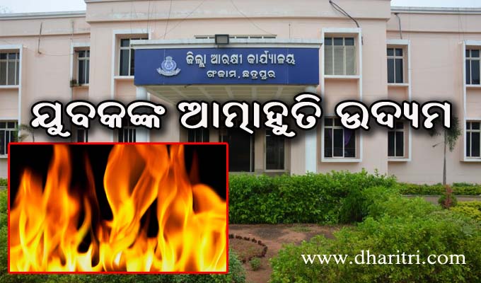 ଛତ୍ରପୁର,୧୪ା୫(ଡି.ଏନ୍.ଏ.): ଛତ୍ରପୁରସ୍ଥିତ ଗଞ୍ଜାମ ଏସ୍ପିଙ୍କ ଅଫିସ ଆଗରେ ଶନିବାର ସନ୍ଧ୍ୟାରେ ଜଣେ ଯୁବକ ଆତ୍ମାହୁତି ଉଦ୍ୟମ କରିଛନ୍ତି। ସେ ହେଲେ ରମ୍ଭା ଥାନା ଅଧୀନ ବୋରିଗାଁର ବାଦଲ ସାହୁ।