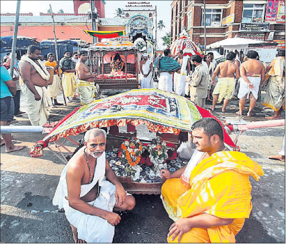 ପୁରୀ ଅଫିସ,୨୮ା୧୦: ଶ୍ରୀମନ୍ଦିରରେ ସୋମବାର ବିଜୟା ଦଶମୀ ନୀତି ପାଳିତ ହୋଇଛି। ଦ୍ୱାରଫିଟା, ମଙ୍ଗଳ ଆଳତି ଓ ଅବକାଶ ନୀତି ପରେ ରତ୍ନସିଂହାସନରେ ବିରାଜିତ ଦାରୁବିଗ୍ରହଙ୍କ ସୁନାବେଶ କରାଯାଇଥିଲା। କୋଭିଡ୍ କଟକଣା ପାଇଁ କୌଣସି ଶ୍ରଦ୍ଧାଳୁ ଏହି ବେଶ ଦର୍ଶନ କରିପାରି ନ ଥିଲେ। ଅବକାଶ ନୀତି ପରେ ତିନିବାଡରେ ଚନ୍ଦନ ଲାଗି କରାଯାଇଥିଲା। ନୂଆଲୁଗା ଲାଗିସାରିବା ପରେ ଠାକୁରଙ୍କ ସୁନାବେଶ ହୋଇଥିଲା। ଏହି ବେଶରେ ଆୟୁଧମାନ ଲାଗି ହୋଇ ନ ଥିଲା। ବେଶ ବଢି ସକାଳ ଧୂପ ପରେ ଆୟୁଧମାନଙ୍କ ମହାସ୍ନାନ ବଢି ବରୁଣ ପୂଜା କରାଯାଇଥିଲା। ତିନିଗୋଟି ରୁପା ଥାଳିରେ ଆୟୁଧମାନ ରଖାଯାଇ ଘଣ୍ଟ, ଛତା, କାହାଳୀ ସହ ତିନିଥର ମନ୍ଦିର ପରିକ୍ରମା କରାଇ ସିଂହାସନକୁ ବିଜେ କଲା ପରେ ତିନିବାଡ଼ରେ ଆୟୁଧ ଲାଗି ହୋଇଥିଲା। ଦଶହରା ପଦା (ଜଗନ୍ନାଥ ବଲ୍ଲଭ ମଠ ସମ୍ମୁଖ)କୁ ଯିବା ପାଇଁ ଚଳନ୍ତି ପ୍ରତିମା ମଦନମୋହନ, ରାମ ଓ କୃଷ୍ଣ ବୀର ବେଶରେ ସଜ୍ଜିତ ହୋଇଥିଲେ। ଠାକୁରମାନେ ବୀରତ୍ୱର ପ୍ରତୀକ ସ୍ବରୂପ ବୀରବେଶ ଧାରଣ କରି ଦଶହରା ପଦାକୁ ଦୁର୍ଗାମାଧବଙ୍କ ସହିତ ଯାଇଥିଲେ। ସେଠାରେ ମହାପ୍ରଭୁଙ୍କ ଚଳନ୍ତି ପ୍ରତିମା ନୀତିକାନ୍ତି ସାରି ଶ୍ରୀମନ୍ଦିରକୁ ଫେରିଥିଲେ।