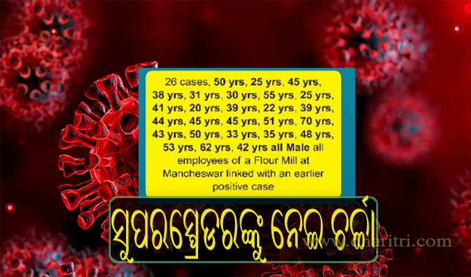 ଭୁବନେଶ୍ୱର,୨୨।୭(ବ୍ୟୁରୋ): ରାଜଧାନୀ ଭୁବନେଶ୍ୱରରେ ମାଡ଼ି ଚାଲିଛି କରୋନା। ଲକ୍ଡାଉନ ସତ୍ତ୍ୱେ ସହରରେ ଆକ୍ରାନ୍ତଙ୍କ ସଂଖ୍ୟା କମିବା ଭଳି ମନେ ହେଉନାହିଁ। ଏହି କ୍ରମରେ ବୁଧବାର ୯୧ ଆକ୍ରାନ୍ତ ଚିହ୍ନଟ ହୋଇଛନ୍ତି। ସେଥିରୁ ୭୨ଜଣ କ୍ୱାରାଣ୍ଟାଇନ୍ରୁ ଥିବା ବେଳେ ୧୯ ଲୋକାଲ୍ କେସ୍ ରହିଛି। ବିଏମ୍ସି ପକ୍ଷରୁ ଏନେଇ ସୂଚନା ଦିଆଯିବା ପରେ ମଞ୍ଚେଶ୍ୱର ଅଞ୍ଚଳ ସୁପର ସ୍ପ୍ରେଡରଙ୍କୁ ନେଇ ଚର୍ଚ୍ଚା ଆରମ୍ଭ ହୋଇଛି। ଅଞ୍ଚଳରେ ଥିବା ଏକ ଅଟାକଳର ଜଣେ ବ୍ୟକ୍ତିଙ୍କ ସଂସ୍ପର୍ଶରେ ଆସି ୨୬ଜଣ ସଂକ୍ରମିତ ହୋଇଛନ୍ତି। ସମସ୍ତେ ଅଟାକଳର କର୍ମଚାରୀ ବୋଲି ଜଣାପଡ଼ିଛି। ସମସ୍ତଙ୍କର ବୟସ ଯଥାକ୍ରମେ ୫୦, ୨୫, ୪୫, ୩୮, ୩୧, ୩୦, ୫୫,୨୫, ୪୧, ୨୦, ୩୯, ୨୨, ୩୯, ୪୪, ୪୫, ୪୫, ୫୧, ୭୦, ୪୩, ୫୦, ୩୩, ୪୮, ୫୩, ୬୨, ୪୨ ବର୍ଷ ବୋଲି ବିଏମ୍ସି ପକ୍ଷରୁ କୁହାଯାଇଛି।