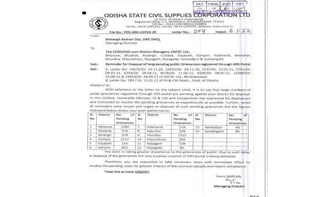 ଛତ୍ରପୁର,୧୬।୧(ଡି.ଏନ୍.ଏ): ଯୋଗାଣ ସମ୍ବନ୍ଧୀୟ ଲୋକଙ୍କ ଅଭିଯୋଗ ଓ ସମସ୍ୟା ଜାଣିବା ଏବଂ ଏହାର ସମାଧାନ କରିବା ଲାଗି ରାଜ୍ୟ ସରକାର ଜିଆରଏସ ପୋର୍ଟାଲର ବ୍ୟବସ୍ଥା କରିଛନ୍ତି । ଫଳରେ ଜନସାଧାରଣ ଉକ୍ତ ପୋର୍ଟାଲ ଜରିଆରେ ଅନଲାଇନ୍ରେ ନିଜର ରାଶନକାର୍ଡ, ଧାନ, ସାର ବିକ୍ରି ଏବଂ ଅନ୍ୟାନ୍ୟ ଯୋଗାଣ ବିଭାଗର ସେବା ସମ୍ପର୍କରେ ନିଜ ନିଜର ଅଭିଯୋଗ ଓ ସମସ୍ୟା ଜଣାଇପାରୁଛନ୍ତି। ତେବେ ଏହାର ପ୍ରକୃତ ଉଦ୍ଦେଶ୍ୟ ଗଞ୍ଜାମ ଜିଲାରେ ସାଧନ ହୋଇପାରୁନ ଥିବା ଦେଖିବାକୁ ମିଳିଛ। ବାରମ୍ବାର ରାଜ୍ୟ ଯୋଗାଣ ବିଭାଗ ପକ୍ଷରୁ ରିମାଇଣ୍ଡର ଜିଲା ଯୋଗାଣ ଅଧିକାରୀଙ୍କୁ ଆସିଛି । ମାତ୍ର ଏବେ ବି ଜନସାଧାରଣଙ୍କ ୮୨୦ ଅଭିଯୋଗର ସମାଧାନ ନହୋଇ ପେଣ୍ଡିଂ ରହିଛି । ଏଗୁଡିକର ସମାଧାନ ପାଇଁ ପୁଣି ରାଜ୍ୟ ଯେଗାଣ ନିଗମର ପରିଚାଳନା ନିର୍ଦ୍ଦେଶକଙ୍କଠାରୁ ଜିଲା ଯୋଗାଣ ଅଧିକାରୀଙ୍କ ନିକଟକୁ ଚିଠି ଆସିଛି। ଏ ସମ୍ପର୍କରେ ଜିଲାପାଳଙ୍କୁ ଅବଗତ କରିବା ପାଇଁ ମଧ୍ୟ ଚିଠି ଆସିଥିବା ଜଣାଯାଇଛି । ଏତେ ସଂଖ୍ୟକ ଅଭିଯୋଗ ମାମଲାର ସମାଧାନ ହୋଇ ନ ଥିବାରୁ ଯୋଗାଣ ମନ୍ତ୍ରୀ ମଧ୍ୟ ଅସନ୍ତୋଷ ପ୍ରକାଶ କରିବା ସହ ଶୀଘ୍ର ଏଗୁଡିକର ସମାଧାନ କରିବାକୁ ନିର୍ଦ୍ଦେଶ ଦେଇଥିବା ଉକ୍ତ ଚିଠିରେ ଉଲ୍ଲେଖ ରହିଛି ।