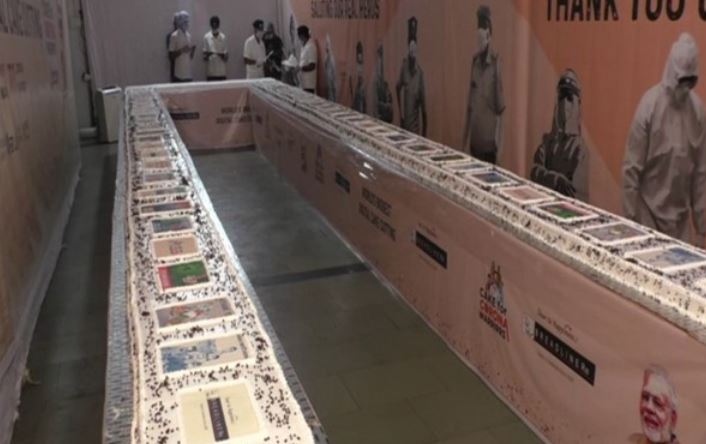ସୁରଟ,୧୭ ।୯: ପ୍ରଧାନମନ୍ତ୍ରୀ ନରେନ୍ଦ୍ର ମୋଦିଙ୍କ ୭୦ ତମ ଜନ୍ମଦିନରେ ଗୁଜରାଟ ସୁରଟର ବ୍ରେଡଲାଇନର ବେକରି ୭୧ ଫୁଟର ଏକ କେକ୍ ତିଆରି କରିଛି । ଏହା କୋରାନା ଯୋଦ୍ଧାଙ୍କ ଥିମ୍କୁ ନେଇ ପ୍ରସ୍ତୁତ କରାଯାଇଛି । ଏହାର ଓଜନ ରହିଛି ୭୭୧ କିଲୋଗ୍ରାମ । କରୋନା ସଂକ୍ରମଣକୁ ଦୃଷ୍ଟିରେ ରଖି ଏହି କେକ୍ କଟାଯିବା ସହ ମୋଦିଙ୍କ ଜନ୍ମଦିନକୁ ଡିଜିଟାଲି ପାଳନ କରାଯାଇଛି । ଏହି କେକ୍କୁ ଅନ୍ଲାଇନରେ ମଧ୍ୟ ବିକ୍ରି କରାଯାଇଛି । ସୂଚନାଯୋଗ୍ୟ, ଗତ ୩ ବର୍ଷ ହେବ ବ୍ରେଡଲାଇନର ବେକରି ମୋଦିଙ୍କ ଜନ୍ମଦିନ ପାଳନ କରି ଆସୁଥିବା ବେଳେ ବିଭିନ୍ନ କାର୍ଯ୍ୟକ୍ରମ ସହ ସୋସିଆଲ ଆୱାରନେସ୍ କାର୍ଯ୍ୟକ୍ରମ ମଧ୍ୟ ଆୟୋଜନ କରିଥାଏ ।