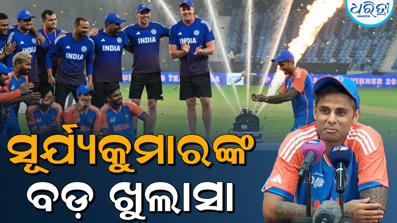 ନୂଆଦିଲ୍ଲୀ,୨୯।୯: ଏସିଆ କପ ଫାଇନାଲରେ ଭାରତ ପାକିସ୍ତାନକୁ ୫ ଉଇକେଟ୍ରେ ପରାସ୍ତ କରିଛି। ଫାଇନାଲ ଜିତିବା ପରେ, ଟିମ ଇଣ୍ଡିଆ ଏସିଆ କପ ଟ୍ରଫି ଗ୍ରହଣ କରିବାକୁ ମନା କରିଦେଇଥିଲା। ଏହା ପରେ, ଭାରତୀୟ ଅଧିନାୟକ ସୂର୍ଯ୍ୟକୁମାର ଯାଦବଙ୍କ ଏକ ବୟାନ ସାମ୍ନାକୁ ଆସିଛି। ଯେଉଁଥିରେ ସେ ପ୍ରକାଶ କରିଛନ୍ତି ଯେ କାହା ପାଖରେ ଏସିଆ କପ୍ର ଅସଲି ଟ୍ରଫି ଅଛି। ମ୍ୟାଚ ପରବର୍ତ୍ତୀ ଉପସ୍ଥାପନା ପରେ, ଟିମ ଇଣ୍ଡିଆର ଅଧିନାୟକ ସୂର୍ଯ୍ୟକୁମାର ଯାଦବ ଟର୍ନାମେଣ୍ଟର ଖେଳାଳି ଅଭିଷେକ ଶର୍ମାଙ୍କ ସହିତ ଏକ ଖବରଦାତା ସମ୍ମିଳନୀରେ ଯୋଗ ଦେଇଥିଲେ, ଯେଉଁଠାରେ ସେ ସମସ୍ତ ପ୍ରଶ୍ନର ଉତ୍ତର ଦେଇଛନ୍ତି।