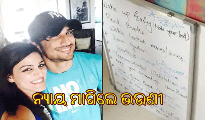 ଜୁନ୍ ୨୯ରେ ସୁଶାନ୍ତଙ୍କ ଜୀବନରେ କିପରି ସବୁ ବଡ଼ ପରିବର୍ତ୍ତନ ଆଣିବାକୁ ଯାଉଛନ୍ତି ତାହା ସେ ପୂର୍ବରୁ ପ୍ରସ୍ତୁତ କରିସାରିଥିଲେ। ହ୍ବାଇଟ୍ବୋର୍ଡରେ ତାହା ସବୁ ସେ ଲେଖିଥିଲେ। ଏଥିସହ ସେ ଭିନ୍ନ କଥା ଚିନ୍ତା କରିବା ସହ ଓ୍ବାର୍କଆଉଟ୍ ଉପରେ ଅଧିକ ଧ୍ୟାଦ ଦେବାକୁ ଚାହୁଁଥିବା ଶ୍ୱେତା କହିଛନ୍ତି। ଏହି ପୋଷ୍ଟ ମାଧ୍ୟମରେ ଭାଇ ପାଇଁ ନ୍ୟାୟ ନିବେଦନ କରିଛନ୍ତି ଶ୍ୱେତା।