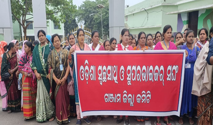 ଛତ୍ରପୁର,୯ା୧୨(ଡି.ଏନ୍.ଏ.): ଛତ୍ରପୁରସ୍ଥିତ ଜିଲାପାଳଙ୍କ କାର୍ଯ୍ୟାଳୟ ସମ୍ମୁଖରେ ଗଞ୍ଜାମ ଜିଲାର ବିଭିନ୍ନ ପୌର ନିଗମ ଓ ଏନ୍ଏସିରେ ପରିମଳ କାମରେ ନିୟୋଜିତ ଶତାଧିକ ସ୍ବଚ୍ଛ ସାଥୀ ଓ ସୁପରଭାଇଜର ନିଜର ଦରମା ବୃଦ୍ଧି, ଚାକିରିକୁ ନିୟମିତ କରିବା, ନିଯୁକ୍ତିପତ୍ର ପ୍ରଦାନ ଆଦି ଦାବି ନେଇ ପ୍ରତିବାଦ ସହିତ ଜିଲାପାଳଙ୍କୁ ସ୍ମାରକପତ୍ର ପ୍ରଦାନ କରିଥିଲେ। ଗଞ୍ଜାମ ଜିଲା ସ୍ବଚ୍ଛ ସାଥୀ ଓ ସୁପରଭାଇଜର ସଂଘ ପକ୍ଷରୁ ଶୁକ୍ରବାର ପୂର୍ବାହ୍ନରେ ସ୍ଥାନୀୟ ପୁରୁଣା ବସ୍ଷ୍ଟାଣ୍ଡ୍ଠାରୁ ଏକ ଶୋଭାଯାତ୍ରାରେ ଯାଇ ଜିଲାପାଳଙ୍କ କାର୍ଯ୍ୟାଳୟରେ ପହଞ୍ଚିବା ପରେ ଜିଲା ସଭାପତି ସଂଯୁକ୍ତା ଦାସଙ୍କ ନେତୃତ୍ୱରେ ଏକ ସଭା ଅନୁଷ୍ଠିତ ହୋଇଥିଲା। ଏଥିରେ ଓଡ଼ିଶା ଆଉଟ୍ସୋର୍ସିଂ ମହାସଂଘର ରାଜ୍ୟ ନେତା ପ୍ରତାପ ଚନ୍ଦ୍ର ପ୍ରଧାନ, ଆଉଟ୍ସୋର୍ସିଂ ମେଡିକାଲ କର୍ମଚାରୀ ନେତା ସି.ଏଚ୍ ସୁନୀଲ ପାତ୍ର, ରାଜଲକ୍ଷ୍ମୀ ସାହୁ, ବିନାୟକ ପତି, ଓଡ଼ିଶା ଆଦର୍ଶ ବିଦ୍ୟାଳୟ କର୍ମଚାରୀ ସଂଘର ସଭାପତି ପ୍ରଶାନ୍ତ ପରିଛା ପ୍ରମୁଖ ଯୋଗ ଦେଇ ସରକାରଙ୍କ ସ୍ବଚ୍ଛ ଭାରତ ଅଭିଯାନରେ ନିୟୋଜିତ ହଜାର ହଜାର ସ୍ବଚ୍ଛ ସାଥୀ ଓ ସୁପରଭାଇଜରମାନଙ୍କୁ କମ୍ ଦରମାରେ ଖଟାଇବା ଓ ସର୍ବନିମ୍ନ ଅଧିକାରରୁ ବଞ୍ଚିତ କରିବାକୁ ନିନ୍ଦା କରିଥିଲେ। ଶେଷରେ ସଭାପତି ସଂଯୁକ୍ତା ଦାସ, ସମ୍ପାଦିକା ସୁଦେଷ୍ଣା ନାୟକଙ୍କ ନେତୃତ୍ୱରେ ଏକ ପାଞ୍ଚ ଜଣିଆ ପ୍ରତିନିଧି ଦଳ ଆଠ ଦଫା ଦାବି ସମ୍ବଳିତ ଏକ ସ୍ମାରକପତ୍ର ଜିଲାପାଳଙ୍କ ଅନୁପସ୍ଥିତିରେ ଅତିରିକ୍ତ ଜିଲାପାଳଙ୍କୁ ପ୍ରଦାନ କରିଥିଲେ।