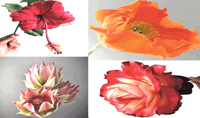 ଫୁଲ କାହାକୁ ବା ଭଲ ନ ଲାଗେ? ଫୁଲକୁ ଦେଖିଲେ ମନ ପ୍ରସନ୍ନ ହୋଇଯାଏ। ଏଠାରେ ଥିବା ସୁନ୍ଦର ଫୁଲଗୁଡ଼ିକୁ ଦେଖି ମଧ୍ୟ ଭାବୁଥିବେ ସତରେ କେତେ ସୁନ୍ଦର ହେଇଛି ପ୍ରକୃତିର ଏହି ସୃଷ୍ଟି! କିନ୍ତୁ ଜାଣି ଆଶ୍ଚର୍ଯ୍ୟ ହେବେ ଏହି ଫୁଲସବୁ ସତସତିକା ନୁହେଁ, ବରଂ ଚିନିରେ ତିଆରି। ମିସେଲ୍ ଗୁୟେନ୍ ନାମ୍ନୀ ଜଣେ କଳାକାର ତିଆରି କରିଛନ୍ତି ଏହି ଫୁଲଗୁଡ଼ିକୁ। ଏସବୁକୁ ସେ ଏତେ ନିଖୁଣଭାବେ ତିଆରି କରିଛନ୍ତି ଯେ, ତାହା ବାସ୍ତବ ନୁହେଁ ବୋଲି କହିବା କଷ୍ଟକର। ମେଲବର୍ନର ମିସେଲ୍ ହେଉଛନ୍ତି ଜଣେ ସୁଗାର ଫ୍ଲାଓ୍ବାର ଆର୍ଟିଷ୍ଟ। ସେ ତିଆରି କରୁଥିବା ଫୁଲଗୁଡ଼ିକର ଜୀବନ୍ତ ପରି ପାଖୁଡ଼ା, ନିଖୁଣ କାମ ହୋଇଥିବା ପତ୍ର ଓ ଉପଯୁକ୍ତ କଲର୍ ତା’ ମଧ୍ୟରେ ବାସ୍ତବତା ଭରିଥାଏ। ମିସେଲ୍ଙ୍କୁ ତାଙ୍କର ଏହି ନିଖୁଣ କାରିଗରି ଲାଗି ଅନେକ ସମ୍ମାନରେ ସମ୍ମାନିତ ବି କରାଯାଇଛି।