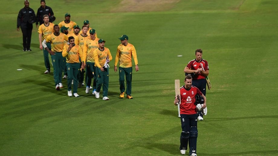 ଟସ୍ ଜିତି ଦକ୍ଷିଣ ଆଫ୍ରିକା ପ୍ରଥମେ ବ୍ୟାଟିଂ କରି ନିର୍ଦ୍ଧାରିତ ୨୦ ଓଭରରେ ୩ ଉଇକେଟ ହରାଇ ୧୯୧ ରନ ସଂଗ୍ରହ କରିଥିଲା। ଦଳ ତରଫରୁ ରାସି ଭାନ୍ ଡେର ଡୁସେନ ସର୍ବାଧିକ ୭୪ ରନ (୩୨ ବଲ, ୫ ଚୌକା, ୫ ଛକା) ଓ ଫାଫ୍ ଡୁପ୍ଲେସି ୫୨ ରନ (୩୭ ବଲ, ୫ ଚୌକା, ୩ ଛକା) ସଂଗ୍ରହ କରି ଦଳକୁ ବଡ଼ ସ୍କୋର ପ୍ରଦାନ କରିଥିଲେ। ଅନ୍ୟମାନଙ୍କ ମଧ୍ୟରେ ଅଧିନାୟକ କ୍ୱିଣ୍ଟନ ଡି’କକ୍ ୧୭, ଟେମ୍ବା ବଭୁମା ୩୨, ରିଜା ହେଣ୍ଡ୍ରିକ୍ସ ୧୩ ରନ କରି ଆଉଟ ହୋଇଥିଲେ। ବୋଲିଂରେ ଇଂଲଣ୍ଡର ବେନ୍ ଷ୍ଟୋକ୍ସ ୨, କ୍ରିସ ଜୋର୍ଡାନ ଗୋଟିଏ ଉଇକେଟ ହାସଲ କରିଥିଲେ।