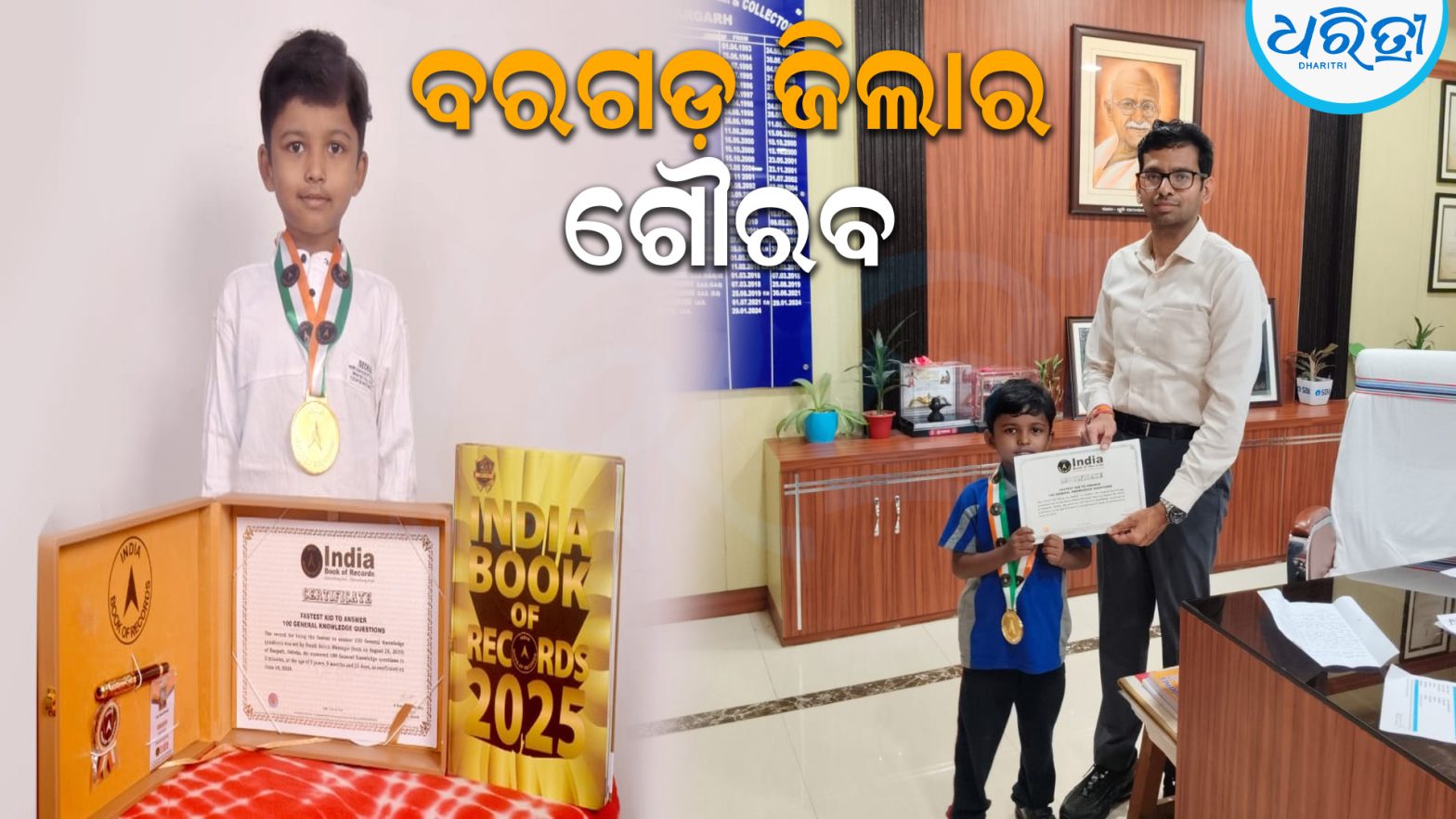 ବରଗଡ଼,୨୨।୭(ପ୍ରେମାନନ୍ଦ ଖମାରୀ)- ବରଗଡ଼ ବ୍ଲକ ଧାଙ୍ଗେର ଗ୍ରାମର ଶିଶୁପୁତ୍ର ସ୍ମୁତି ସାଲୋମ ଭୋସାଗର(୪ବର୍ଷ ୯ମାସ) ଇଣ୍ଡିଆ ବୁକ ଅଫ ରେକର୍ଡରେ ସ୍ଥାନ ପାଇଛନ୍ତି। ମାତ୍ର ୨ ମିନିଟରେ ୧୦୦ଟି ପ୍ରଶ୍ନର ତ୍ୱରିତ ଉତ୍ତର ଦେଇ ସେ ଏଭଳି କୃତିତ୍ୱ ଅର୍ଜନ...