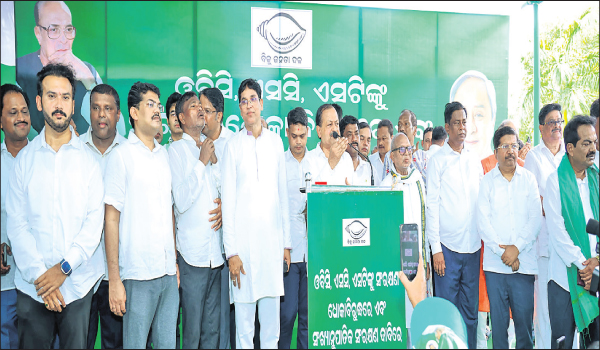 ଭୁବନେଶ୍ୱର, ୨୨।୫,(ସୁନିତ୍ ମିଶ୍ର):ରାଜ୍ୟରେ ଏସ୍ଇବିସି ବର୍ଗଙ୍କ ପାଇଁ ୨୭ ପ୍ରତିଶତ ସଂରକ୍ଷଣ ଏବଂ ଏସ୍ସି, ଏସ୍ଟି ବର୍ଗର ଛାତ୍ରୀଛାତ୍ରଙ୍କ ପାଇଁ ମେଡିକାଲ, ଇଞ୍ଜିନିୟରିଂ ଏବଂ ଅନ୍ୟ ବୈଷୟିକ ଓ ବୃତ୍ତିଗତ ଶିକ୍ଷା କ୍ଷେତ୍ରରେ ୩୮.୭୫ ପ୍ରତିଶତ ସଂରକ୍ଷଣ ଦାବି ନେଇ...