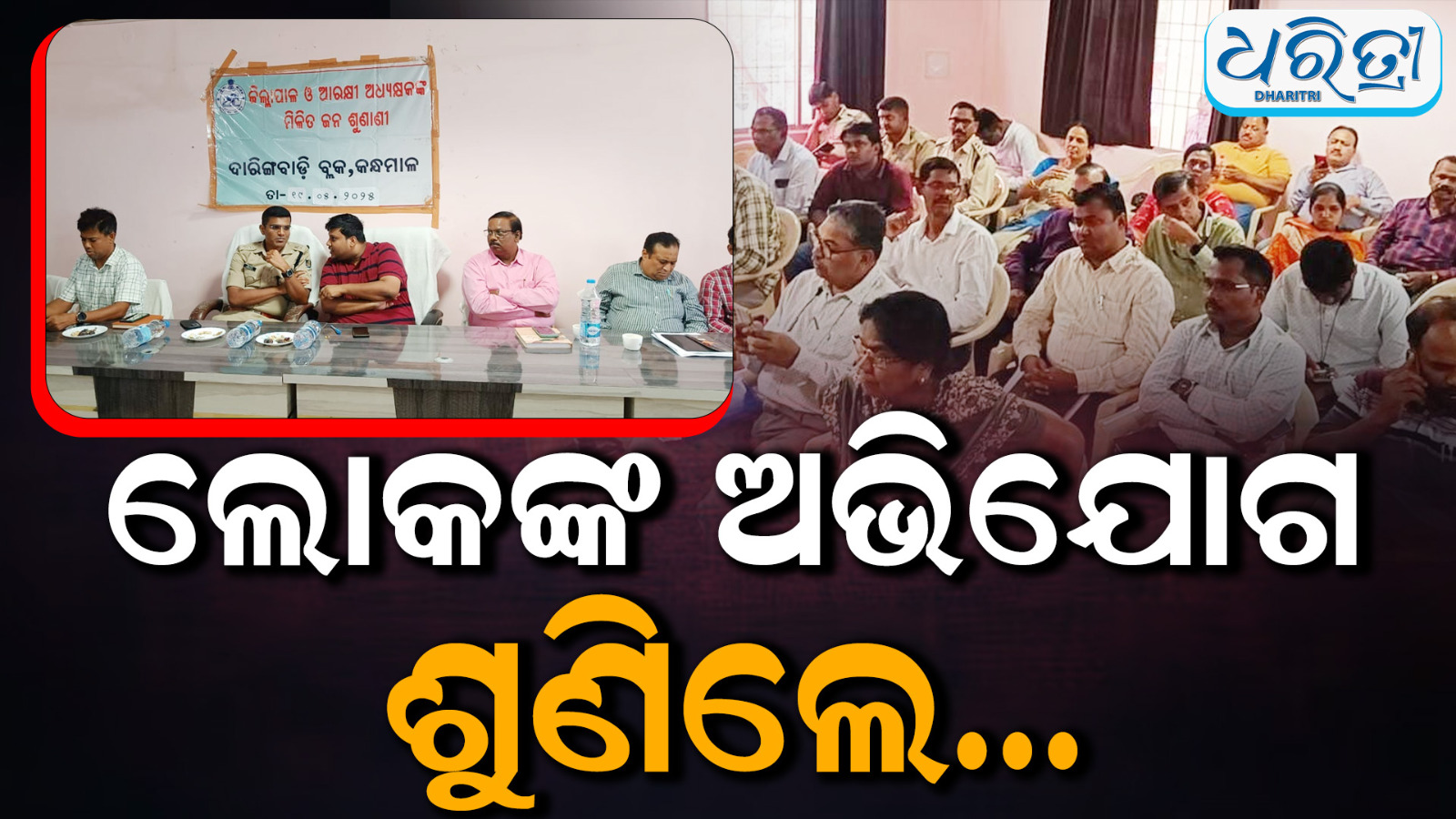 ଦାରିଙ୍ଗବାଡ଼ି,୧୯ା୫(ଅରୁଣ ସାହୁ): କନ୍ଧମାଳ ଗିଲା ଦାରିଙ୍ଗବାଡ଼ି ବ୍ଲକ ସଭାଗୃହଠାରେ ସୋମବାର ଲୋକଙ୍କ ବିଭିନ୍ନ ଅଭିଯୋଗକୁ କନ୍ଧମାଳ ଜିଲାପାଳ ଅମ୍ରିତ ଋତୁରାଜ ଏବଂ ଏସ୍ପିଙ୍କ ମିଳିତ ଅଭିଯୋଗ ଶୁଣାଣି…