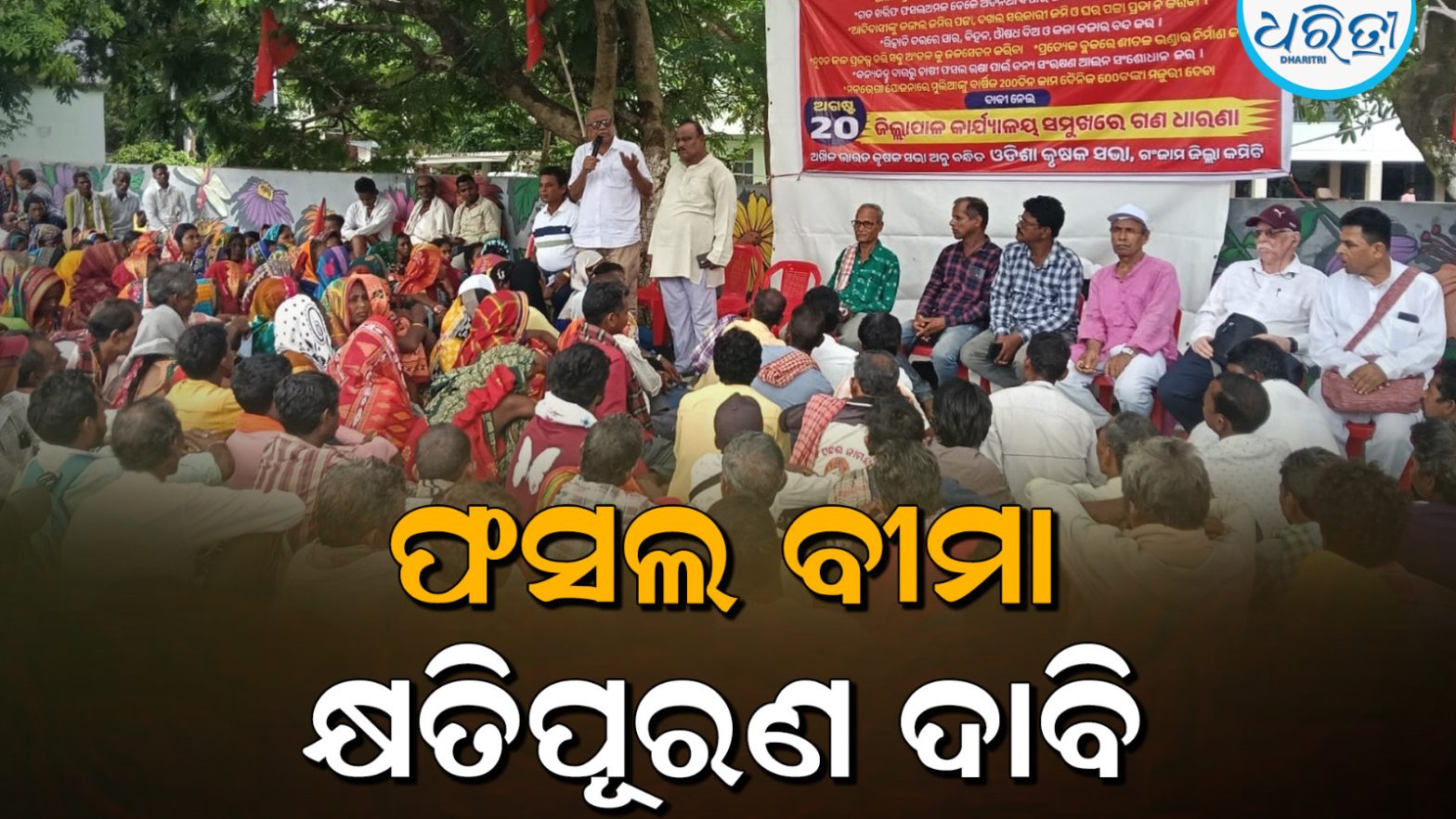 ଫସଲ ବୀମା କ୍ଷତିପୂରଣ ଦାବି ନେଇ ଜିଲାପାଳଙ୍କ କାର୍ଯ୍ୟାଳୟ ସମ୍ମୁଖରେ ଧାରଣା