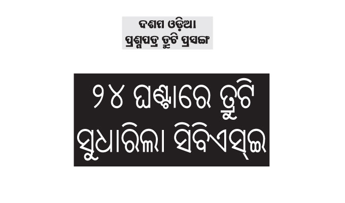 ଭୁବନେଶ୍ୱର, ୧୬।୩(ବ୍ୟୁରୋ): କେନ୍ଦ୍ରୀୟ ମାଧ୍ୟମିକ ଶିକ୍ଷା ବୋର୍ଡ (ସିବିଏସ୍ଇ)ର ଦଶମ ଶ୍ରେଣୀ ଟର୍ମ-୧ ଓଡ଼ିଆ ପରୀକ୍ଷା ମୂଲ୍ୟାୟନ ତ୍ରୁଟି ଅଭିଯୋଗ ଘଟଣାରେ ୨୪ ଘଣ୍ଟା ଭିତରେ ପଦକ୍ଷେପ ନେଇଛି ବୋର୍ଡ। ତ୍ରୁଟି ରହିଥିବା ପ୍ରଶ୍ନ ପାଇଁ ପିଲାଙ୍କୁ ଫୁଲ୍ ମାର୍କ...