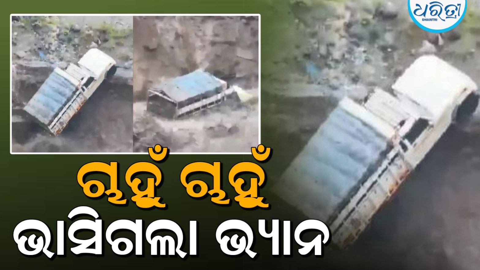 ପ୍ରବଳ ବର୍ଷା, ଚାହୁଁ ଚାହୁଁ ନଦୀରେ ଭାସିଗଲା ରାସ୍ତାରେ ଥିବା ଭ୍ୟାନ