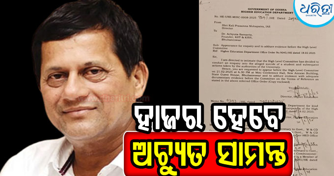ଭୁବନେଶ୍ୱର,୨୦।୨: KIIT ଛାତ୍ରୀ ଘଟଣାରେ ଗୁରୁବାର ପ୍ରତିଷ୍ଠାତା ଅଚ୍ୟୁତ ସାମନ୍ତଙ୍କୁ ସରକାରଙ୍କ ହାଇଲେବୁଲ କମିଟି ଆଗରେ ହାଜର ହେବାକୁ ନିର୍ଦ୍ଦେଶ ଦିଆଯାଇଛି। ହାଜର ପାଇଁ ନିର୍ଦ୍ଦେଶ ଜାରି କରିଛି ଉଚ୍ଚ ଶିକ୍ଷା ବିଭାଗ। ଚିଠି ଜରିଆରେ ତାଙ୍କୁ ଶୁକ୍ରବାର ସନ୍ଧ୍ୟା...