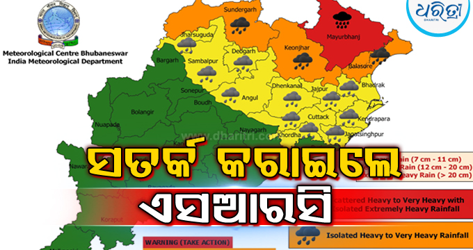 ପ୍ରବଳ ବର୍ଷା ସମ୍ଭାବନା: ଜିଲାପାଳଙ୍କୁ ସତର୍କ କରାଇଲେ ଏସଆରସି
